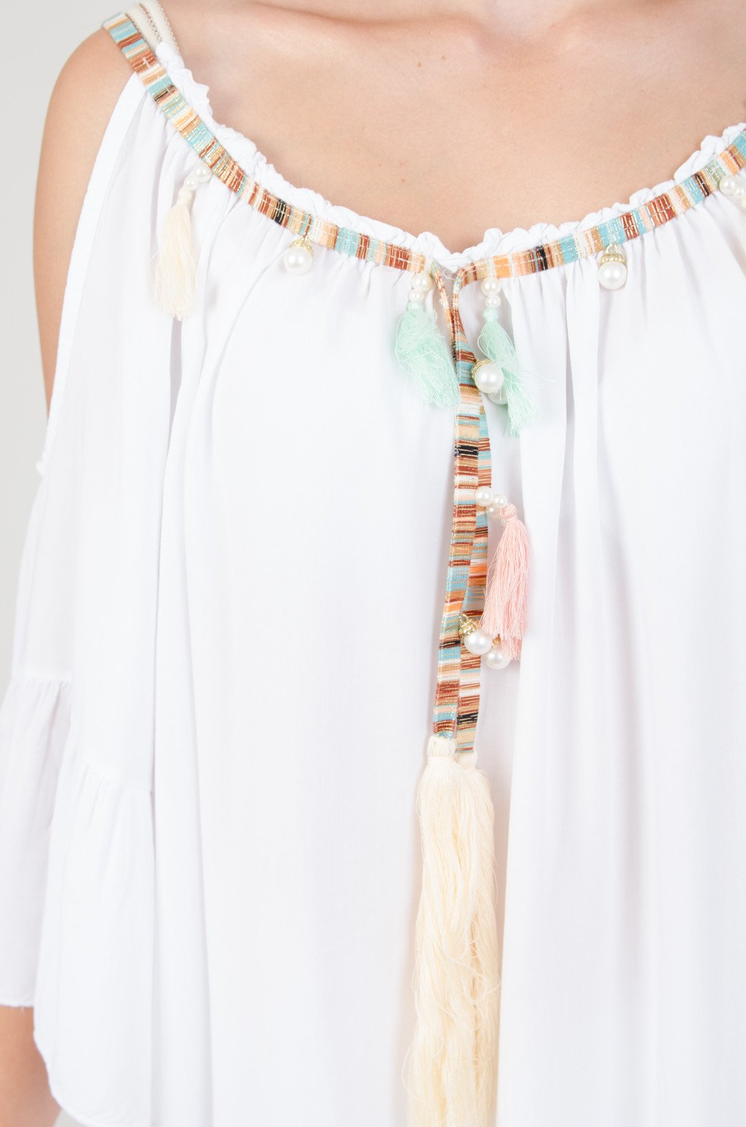 Biała luźna tunika na cienkich kolorowych ramiączkach
