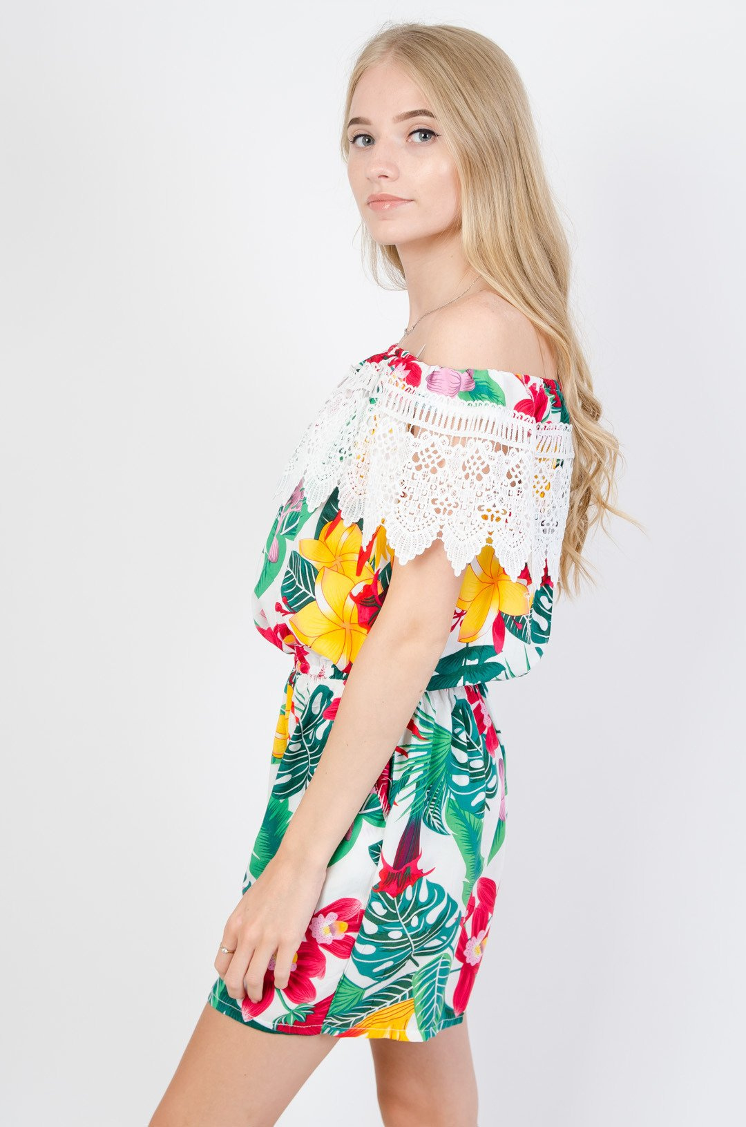 Kombinezon z koronką w dekolcie w kolorze białym- guma w pasie
