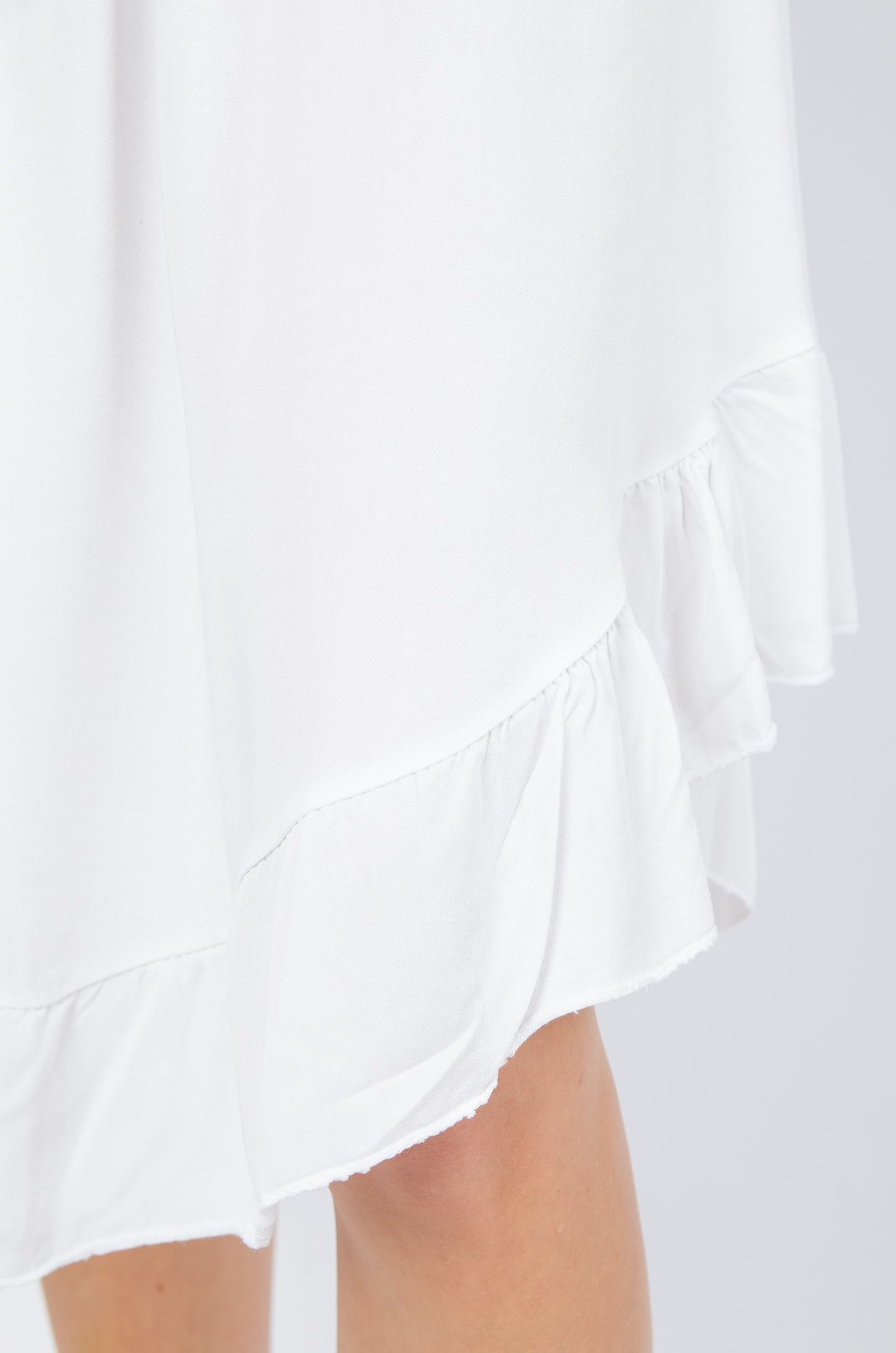 Biała asymetryczna sukienka z hiszpańskim dekoltem