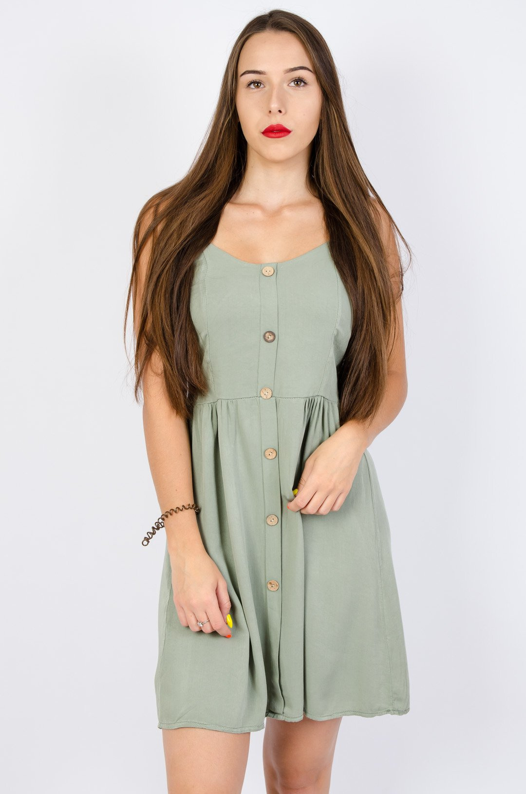 Zielona sukienka na cienkich ramiączkach z rzędem guzików