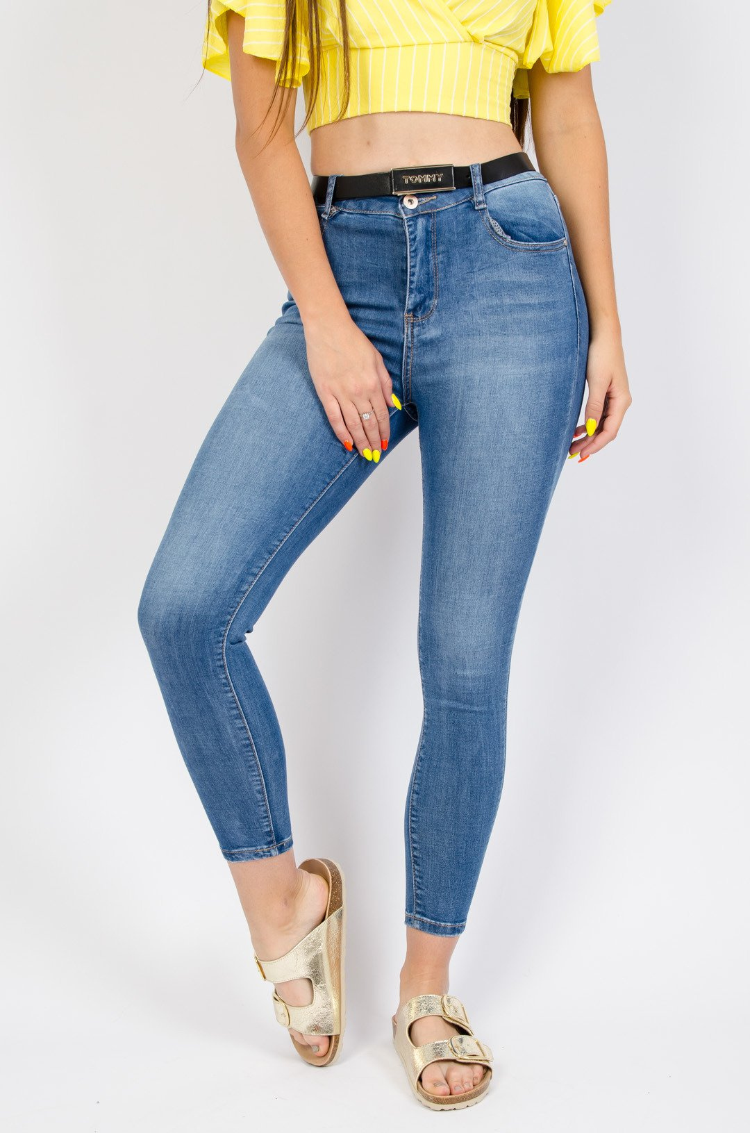 Jasne spodnie jeansowe z wysokim stanem