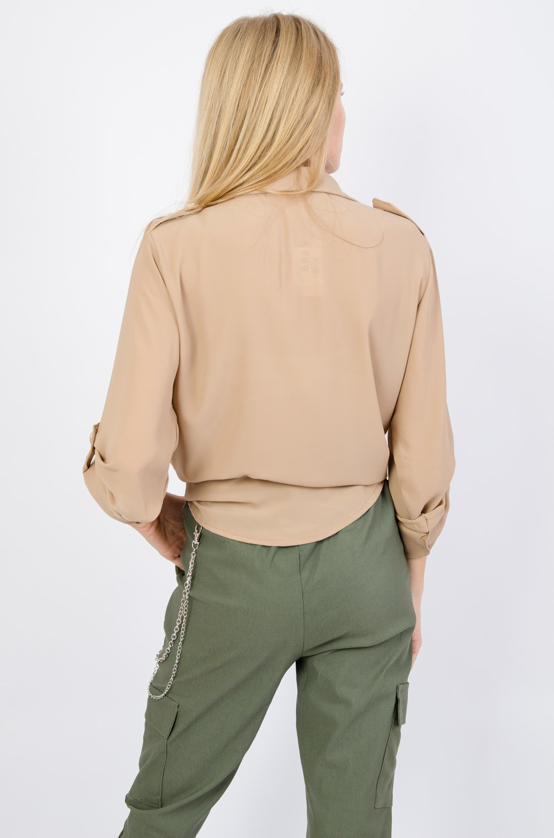 Brązowa bluzka koszulowa ze złotymi guzikami