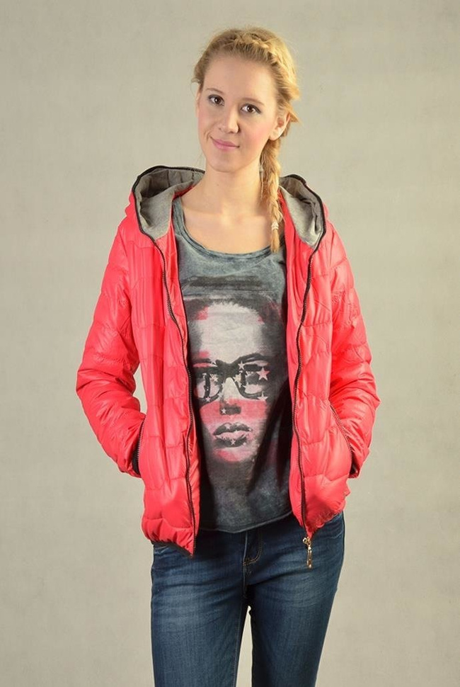Niezwykle stylowa, krótka, pikowana kurtka z kapturem. Zapinana na suwak. Z przodu dwie kieszenie.