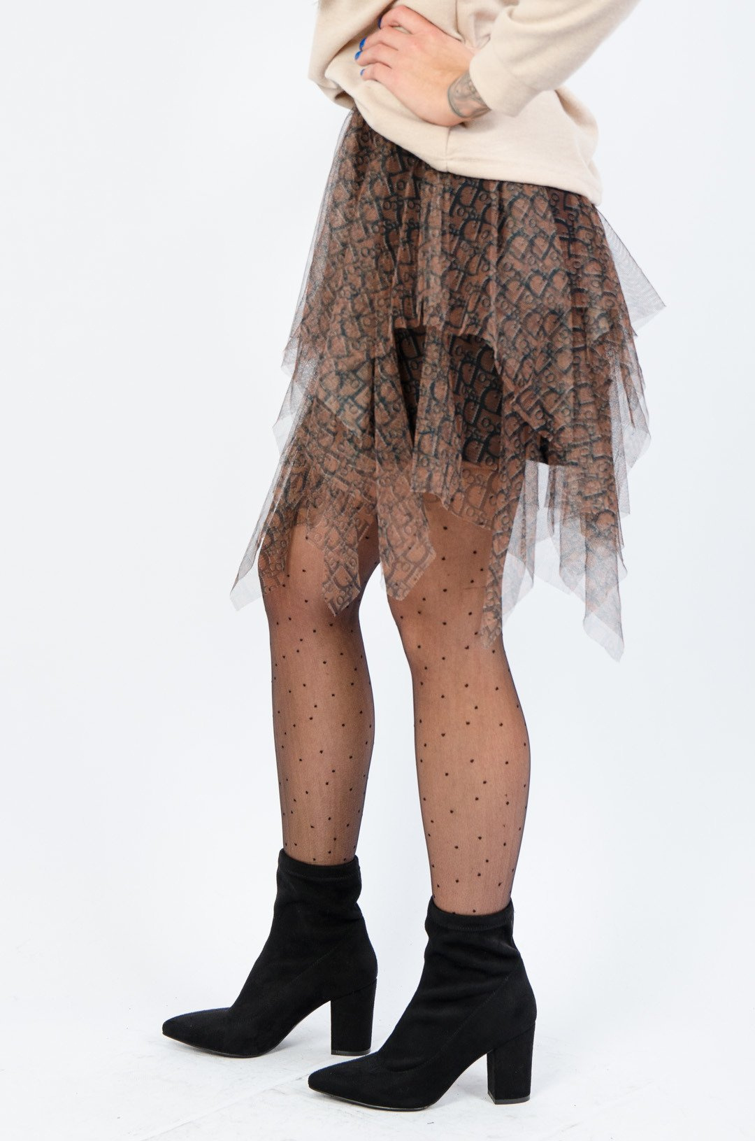 BRĄZOWO-CZARNA SPÓDNICA TIULOWA MINI