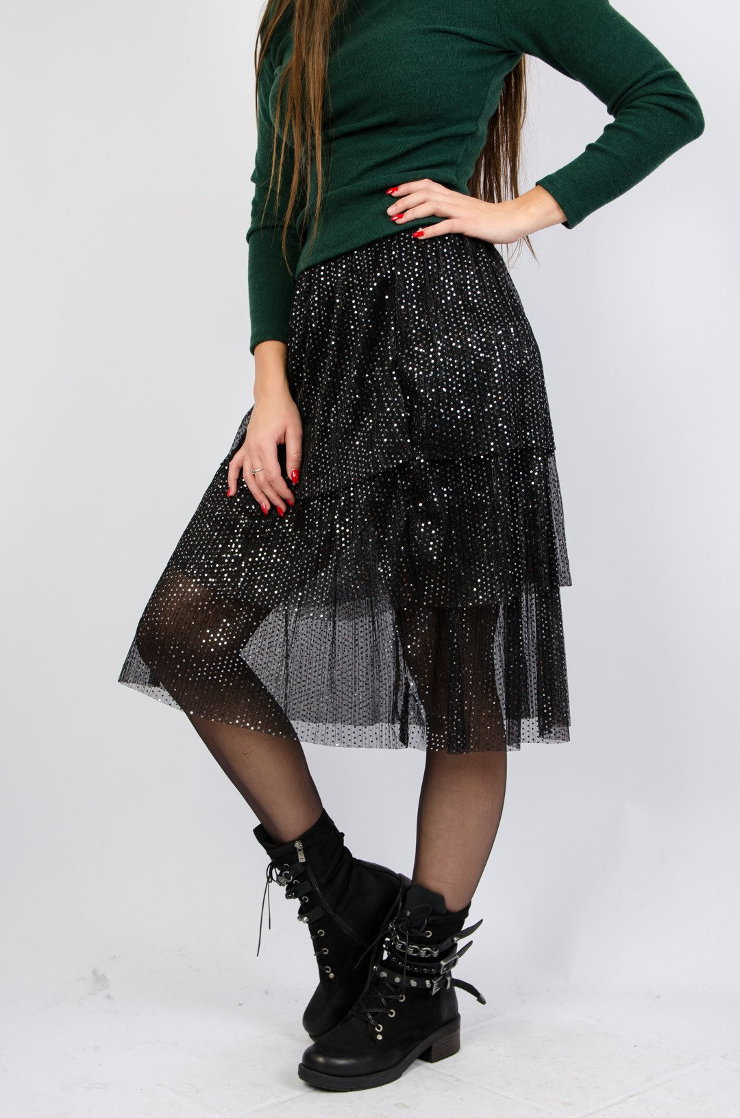 CZARNO-SREBRNA TIULOWA SPÓDNICA