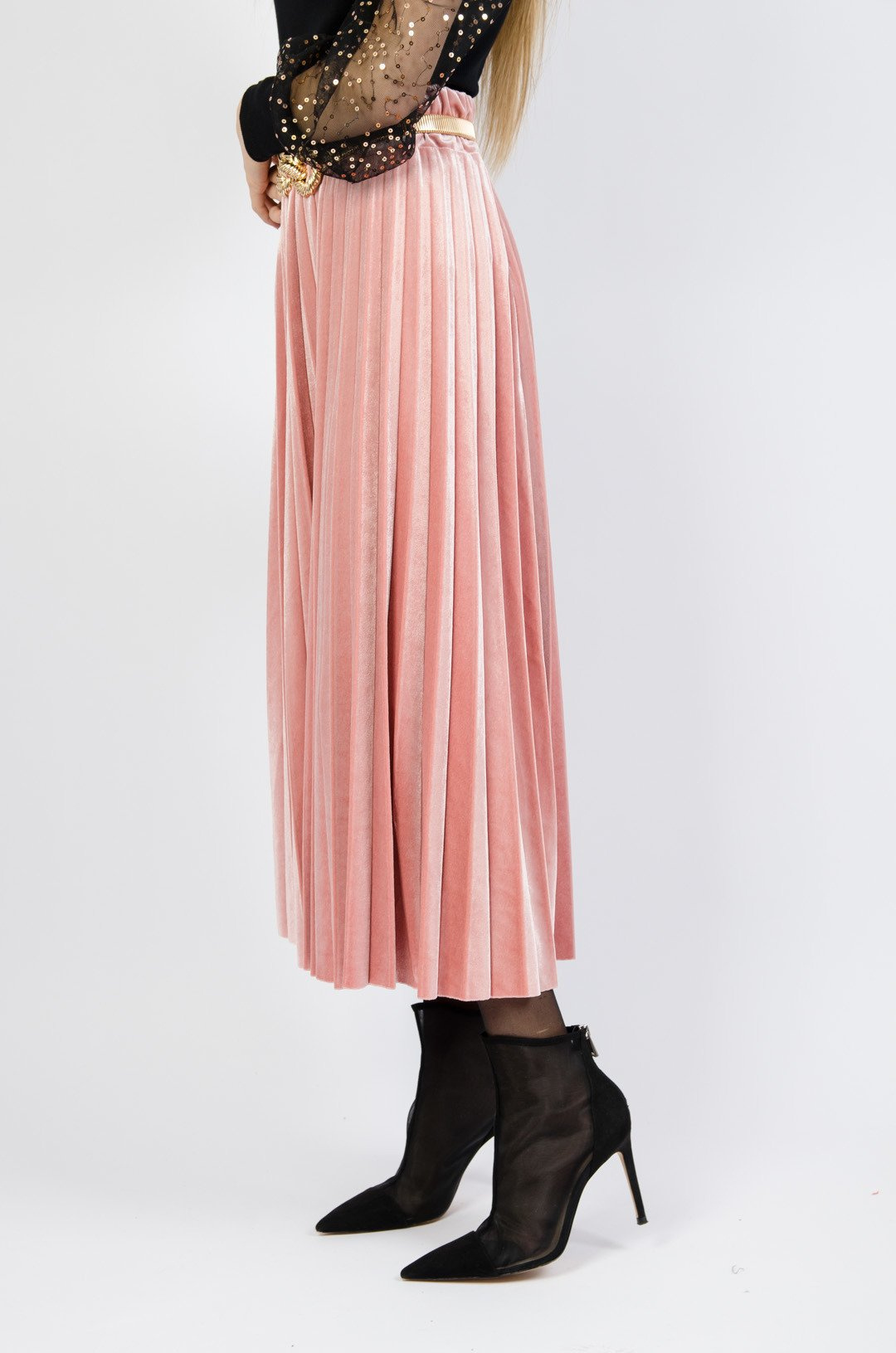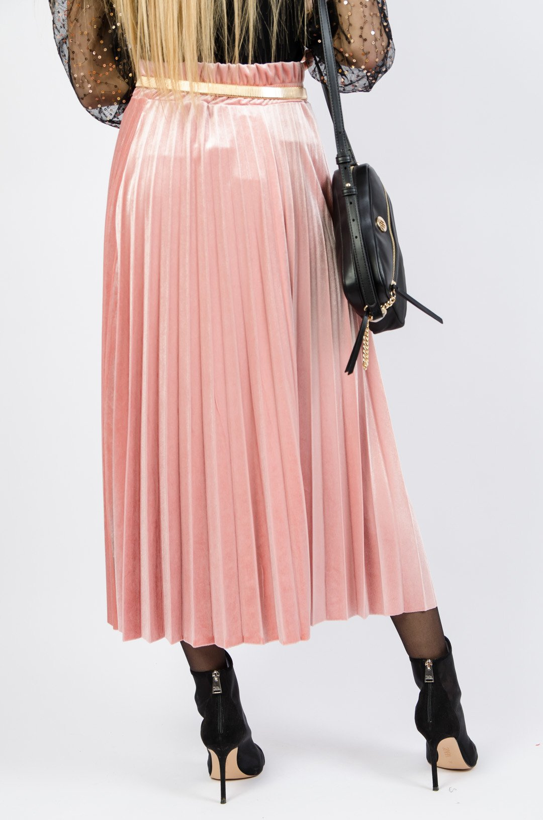 JASNO-RÓŻOWA WELUROWA SPÓDNICA Z PLISOWANIEM