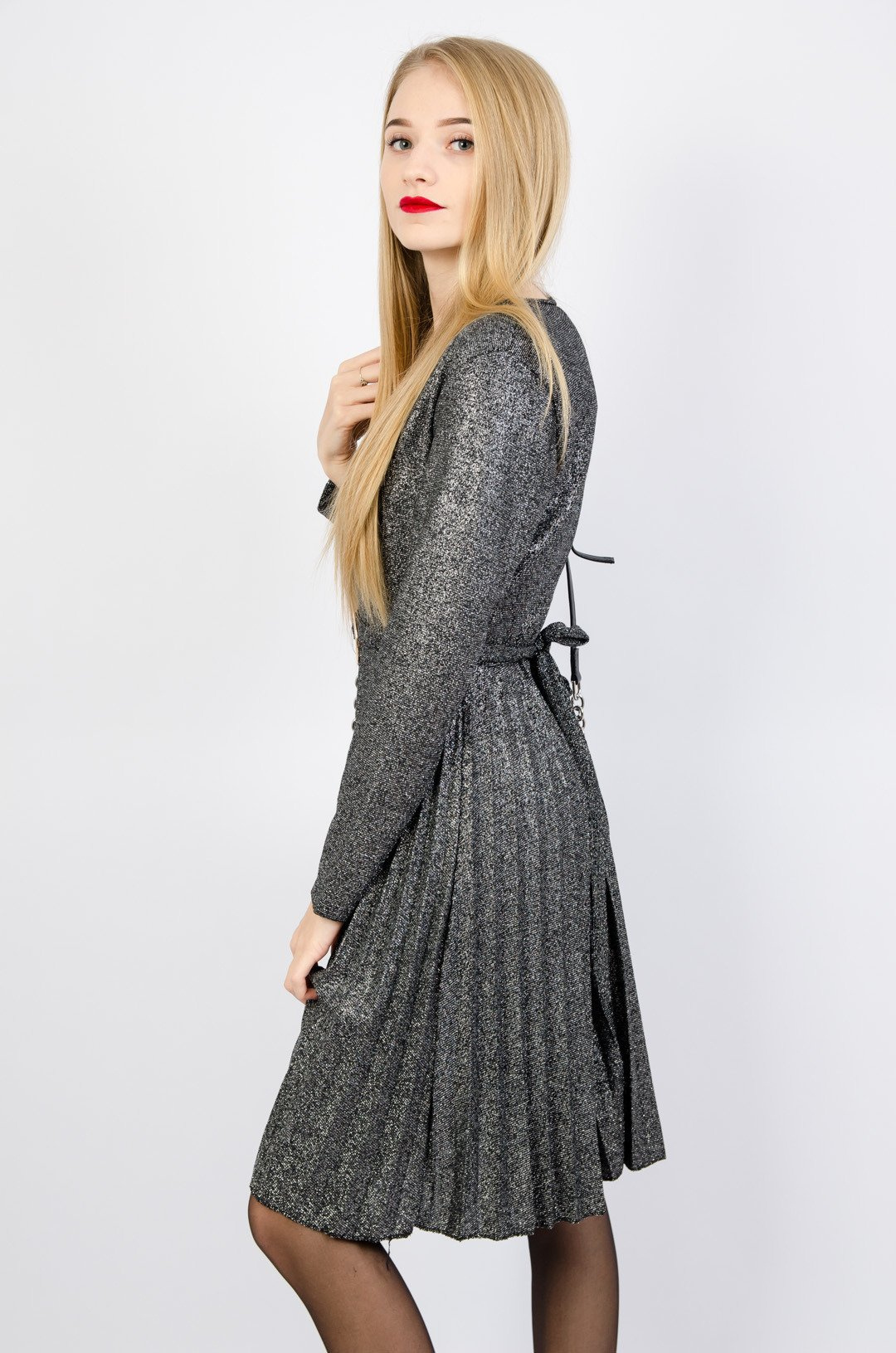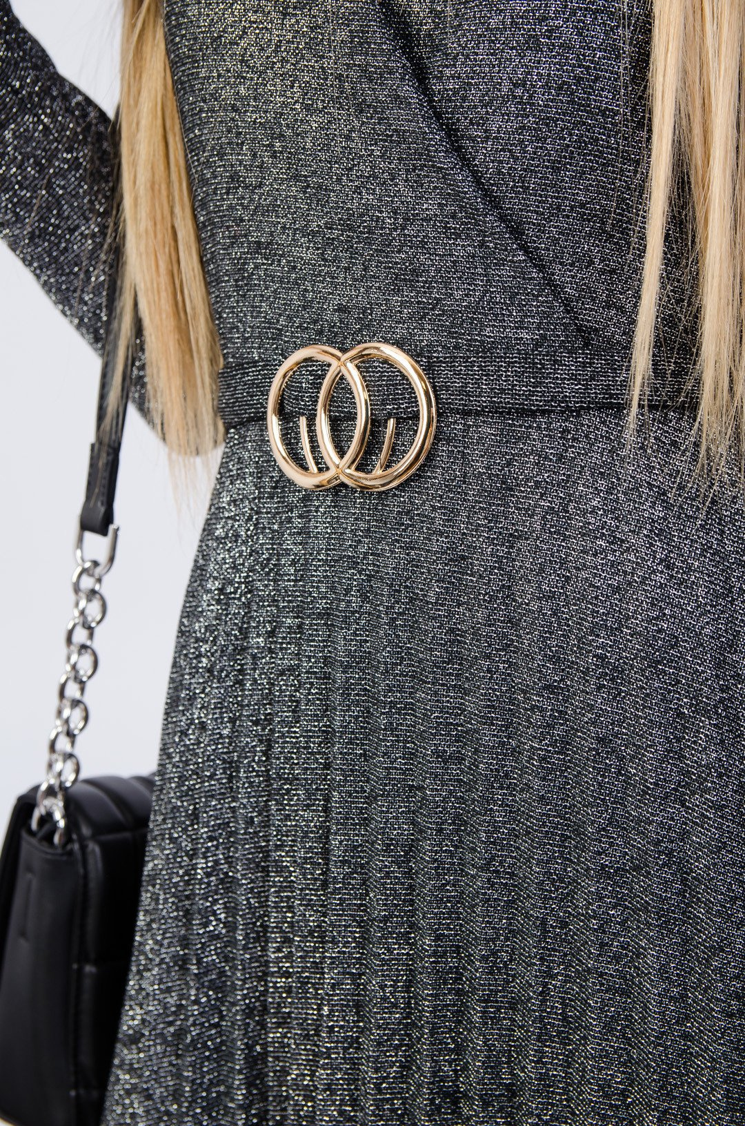 SZARA BROKATOWA SUKIENKA Z PLISOWANYM DOŁEM + PASEK