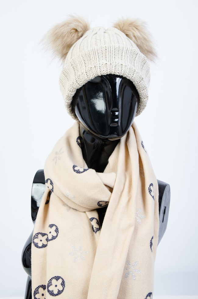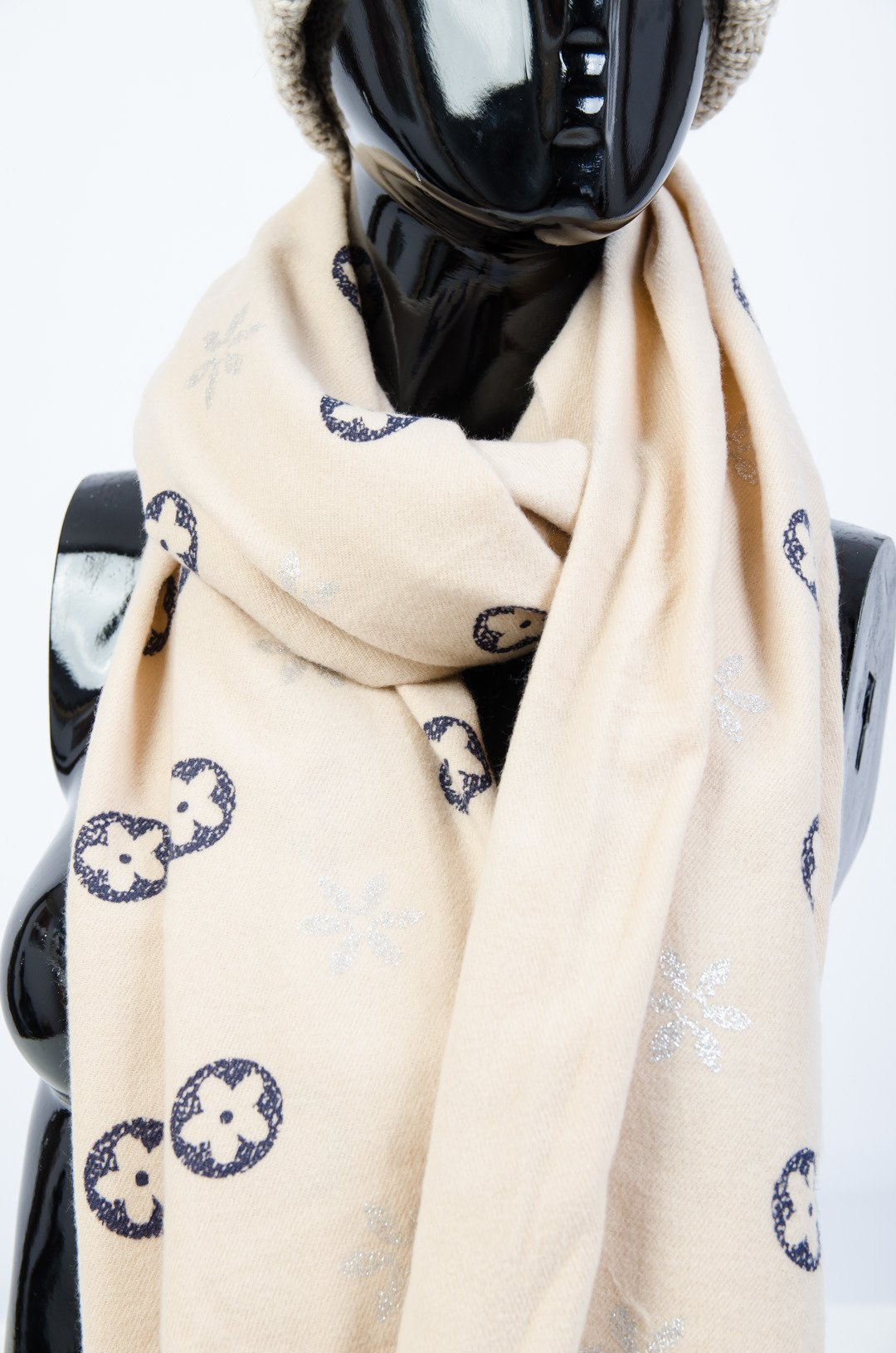 BEŻOWY SZAL Z APLIKACJĄ W KWIATY