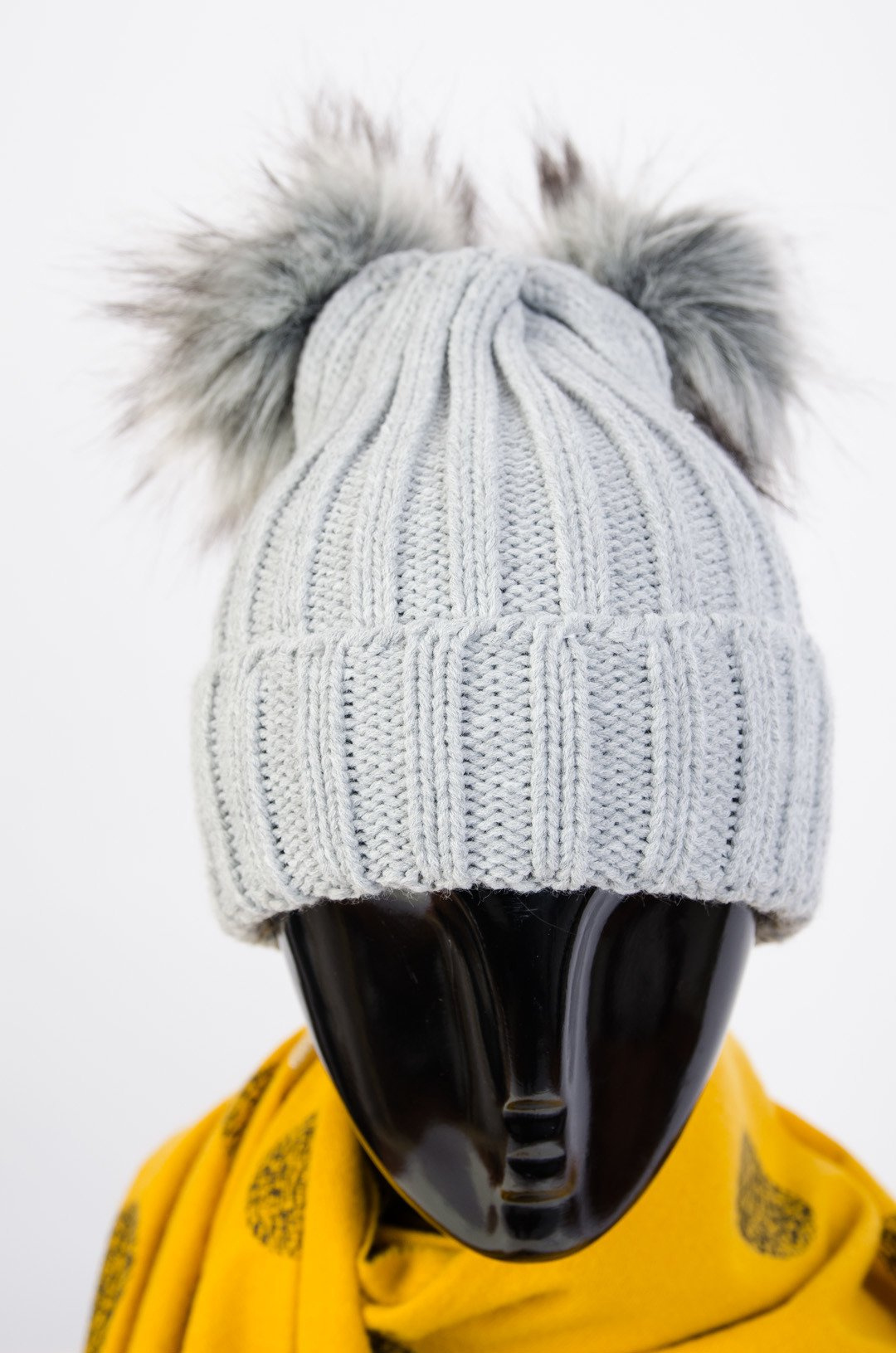 SZARA ZIMOWA CZAPKA Z DWOMA POMPONAMI