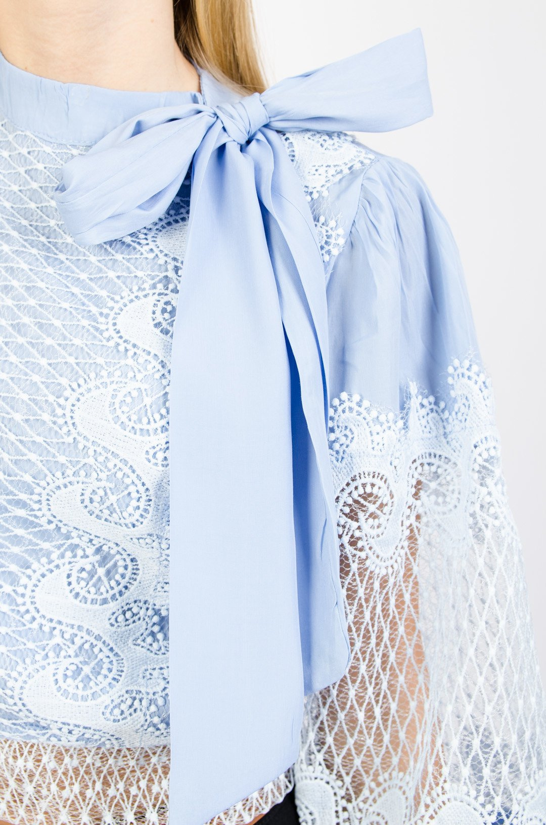 NIEBIESKA AŻUROWA BLUZKA Z BUFIASTYMI RĘKAWAMI