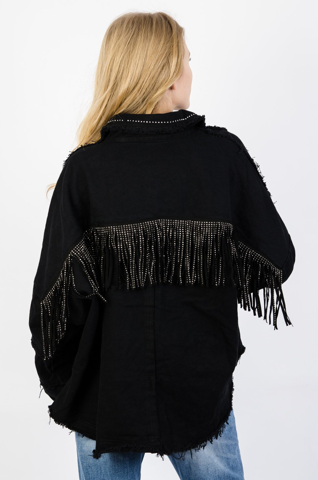 CZARNA KOSZULA JEANSOWA Z OZDOBNYMI FRĘDZLAMI