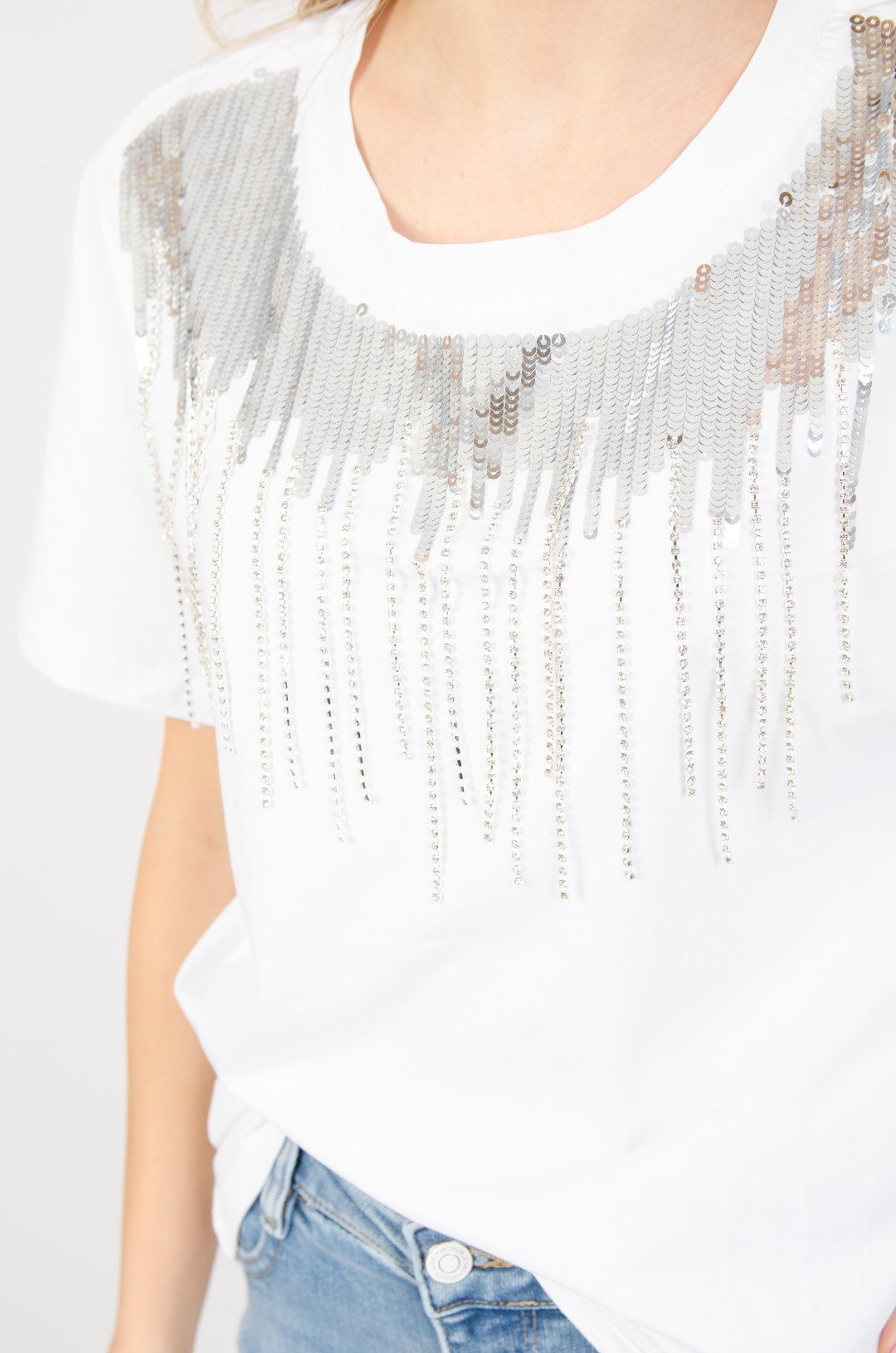 BIAŁY T-SHIRT Z CEKINAMI