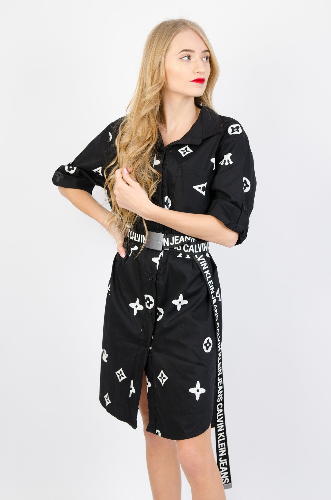 DŁUGA CZARNA ASYMETRYCZNA KOSZULA Z NADRUKIEM