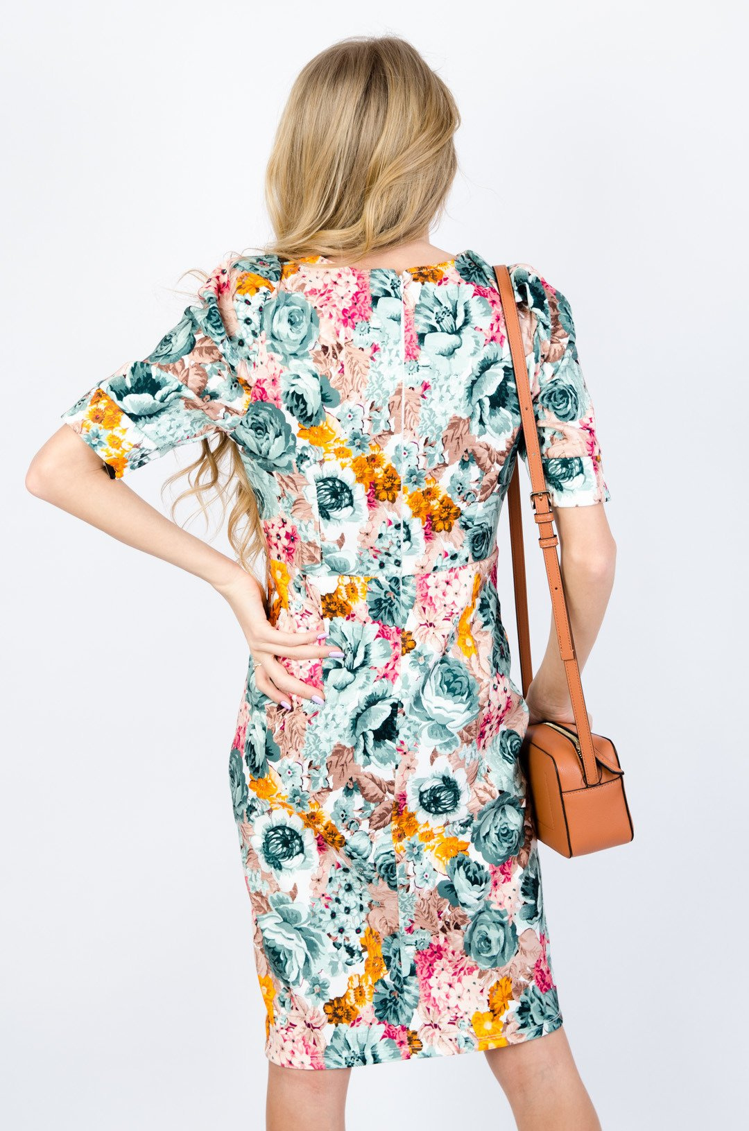 PRZYLEGAJĄCA SUKIENKA W KWIATY Z BUFIASTYMI RĘKAWAMI