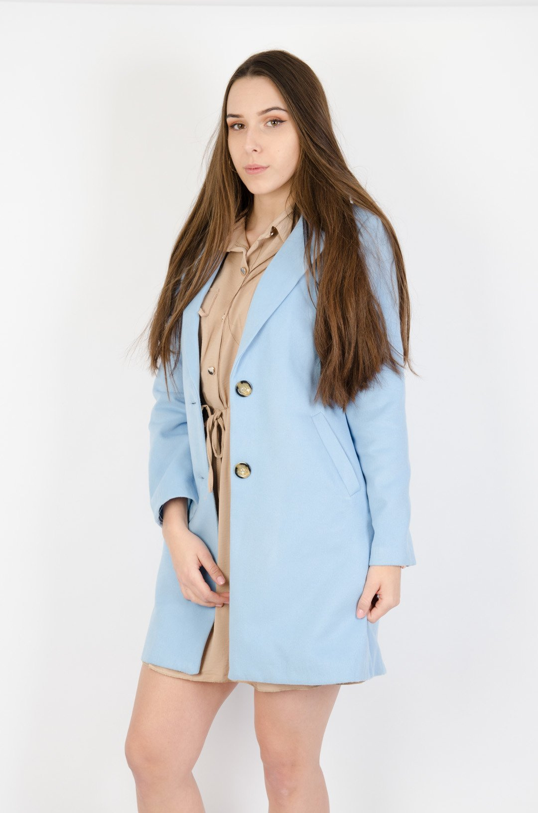 WIOSENNY PŁASZCZ W PASTELOWYM ODCIENIU - NIEBIESKI