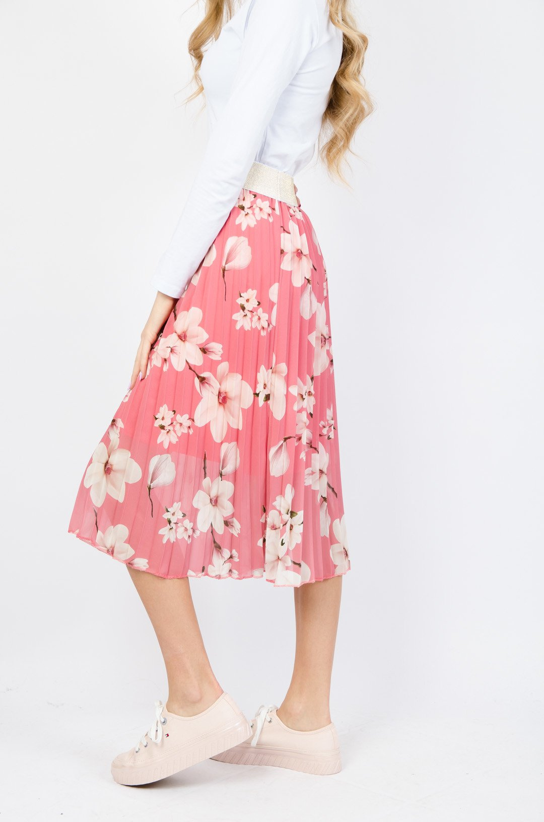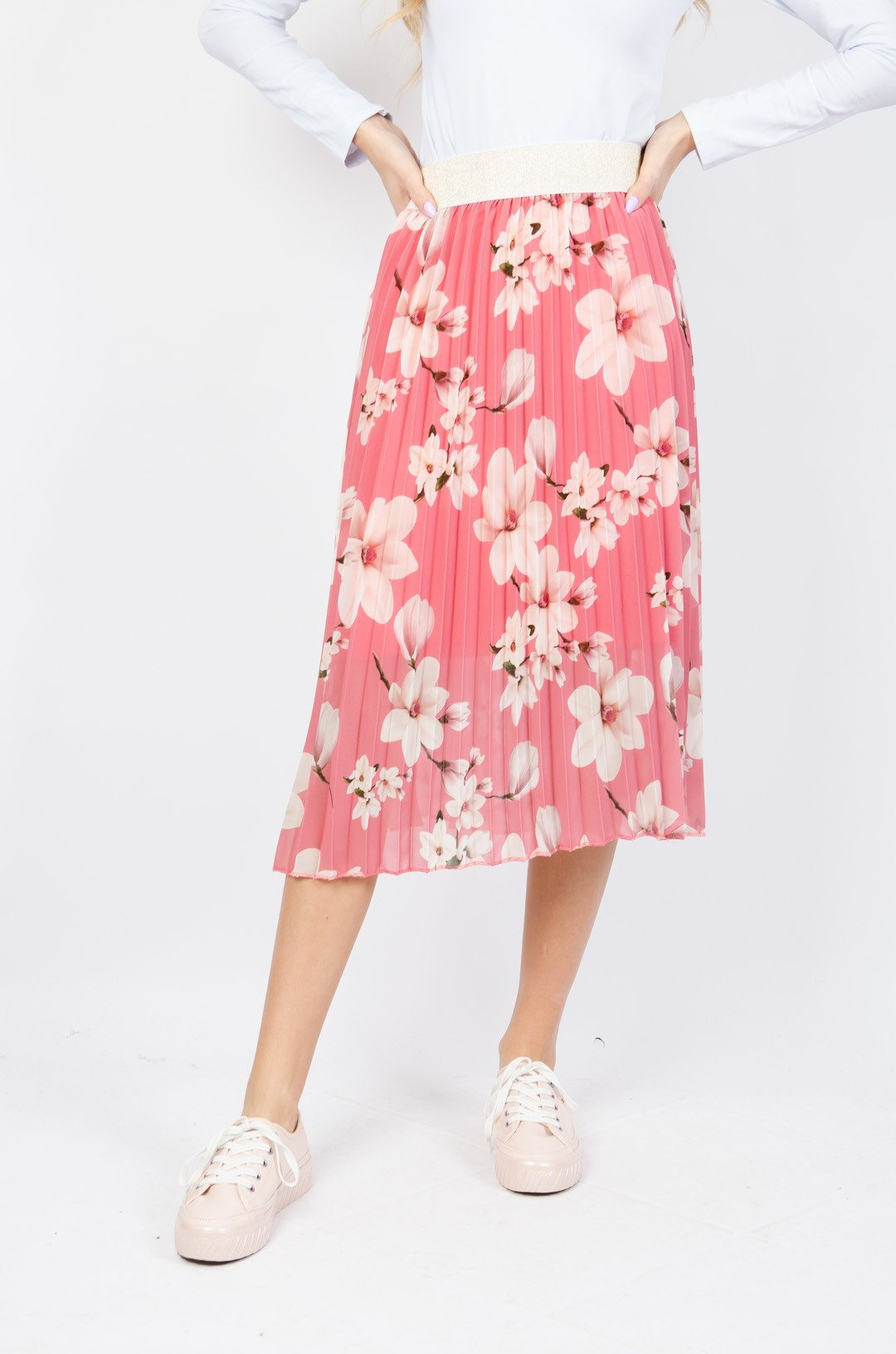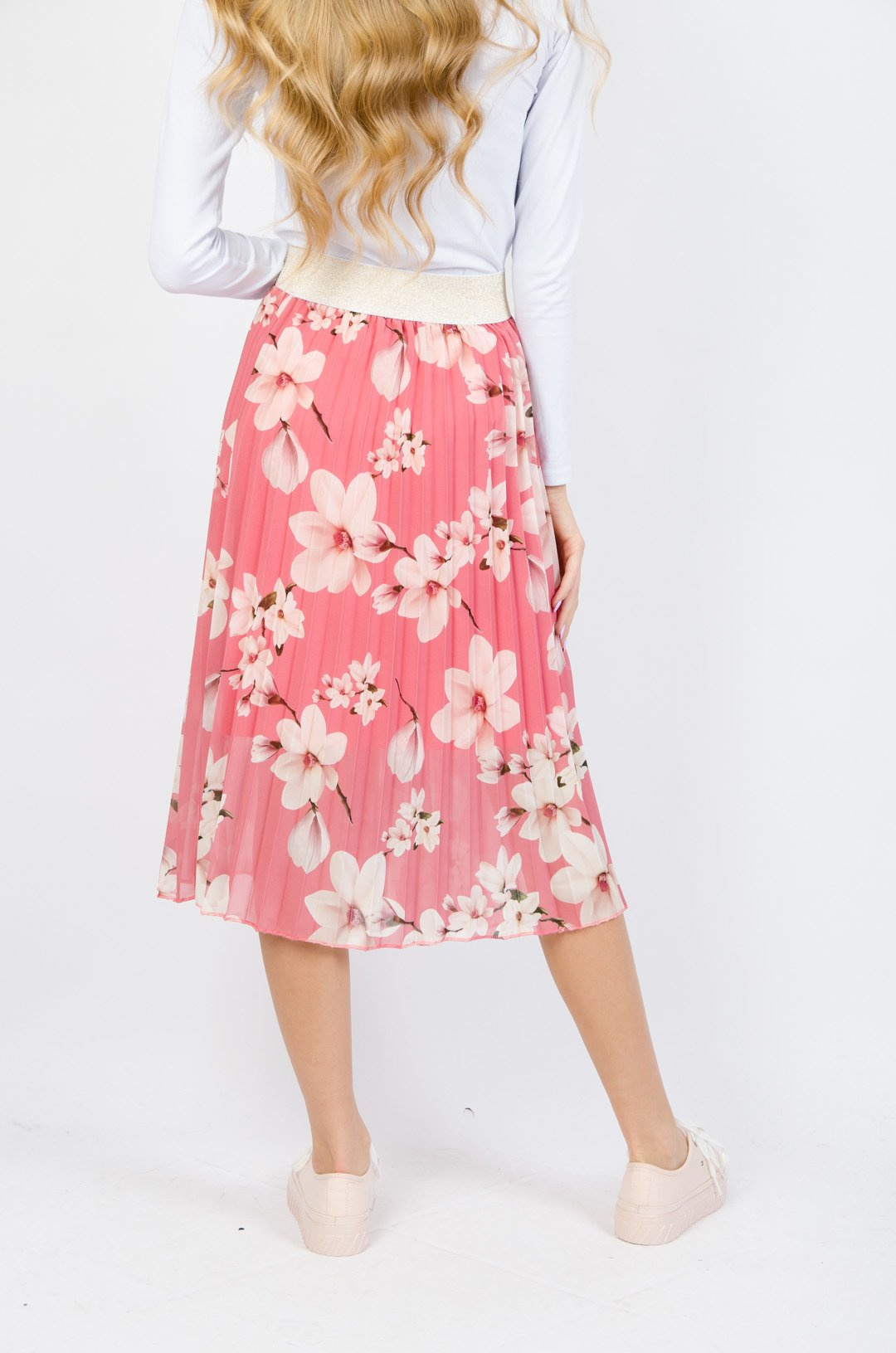 PLISOWANA SPÓDNICA W KWIATY W KOLORZE RÓŻOWYM