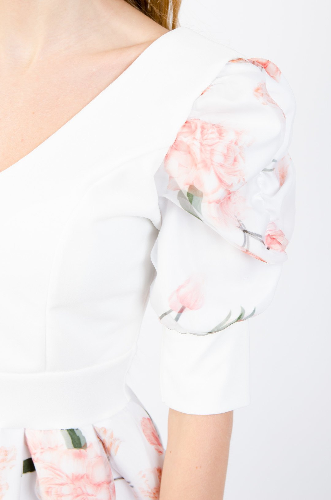 BIAŁA ROZKLOSZOWANA SUKIENKA Z BUFKAMI