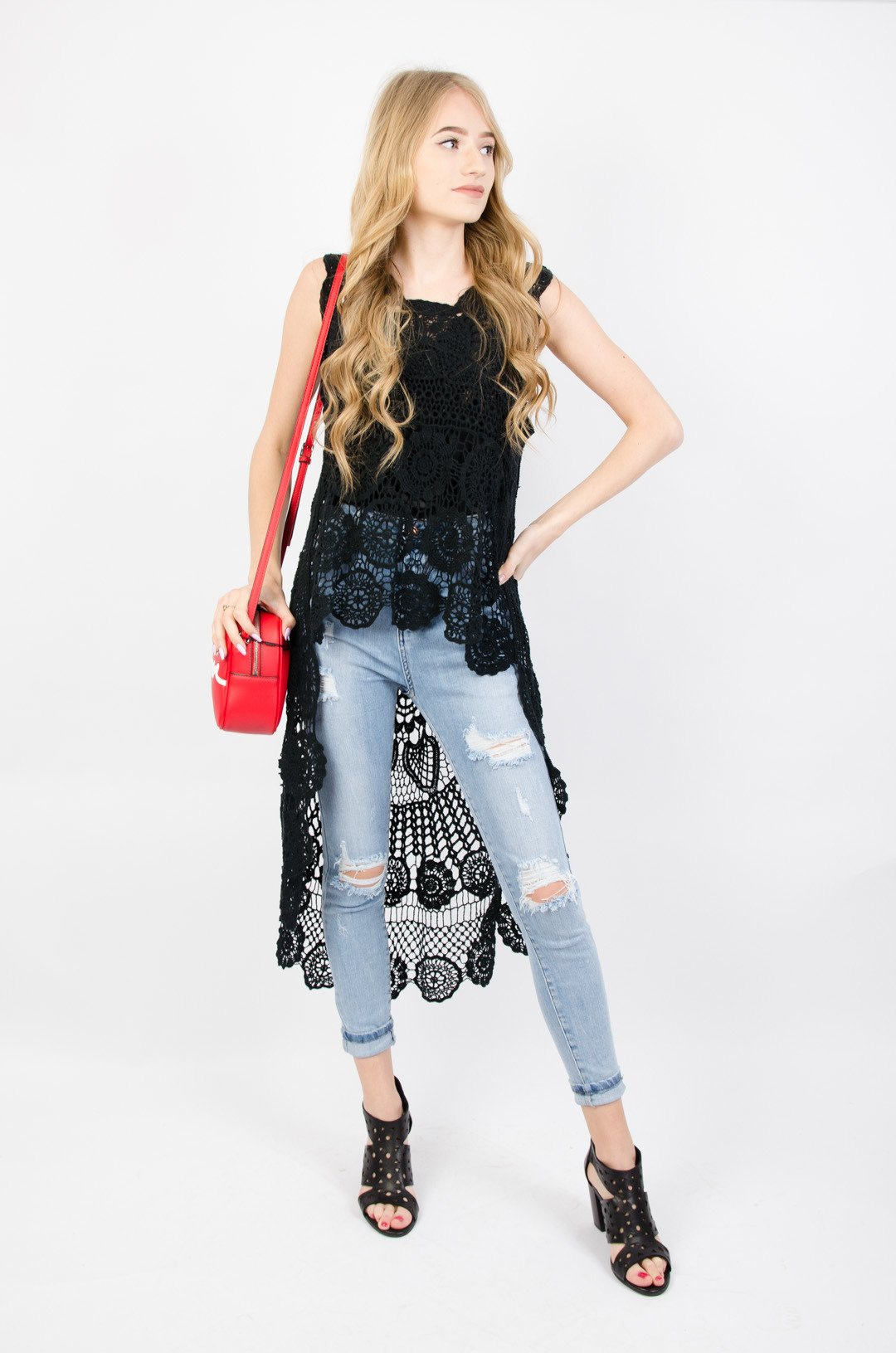 Czarna ażurowa tunika z dłuższym tyłem