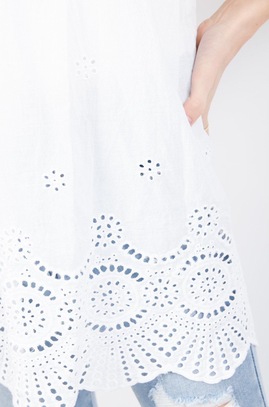 Biała bluzka hiszpanka z ażurowymi wstawkami