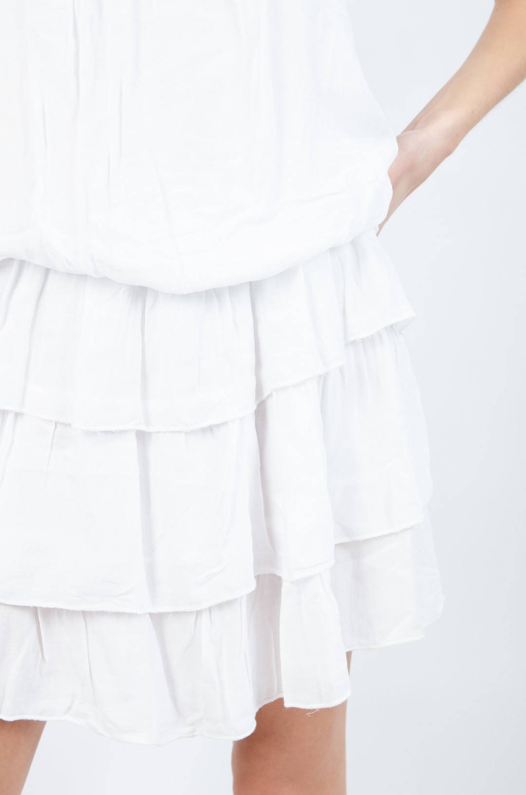 BIAŁA WARSTWOWA SUKIENKA BEZ RAMIĄCZEK