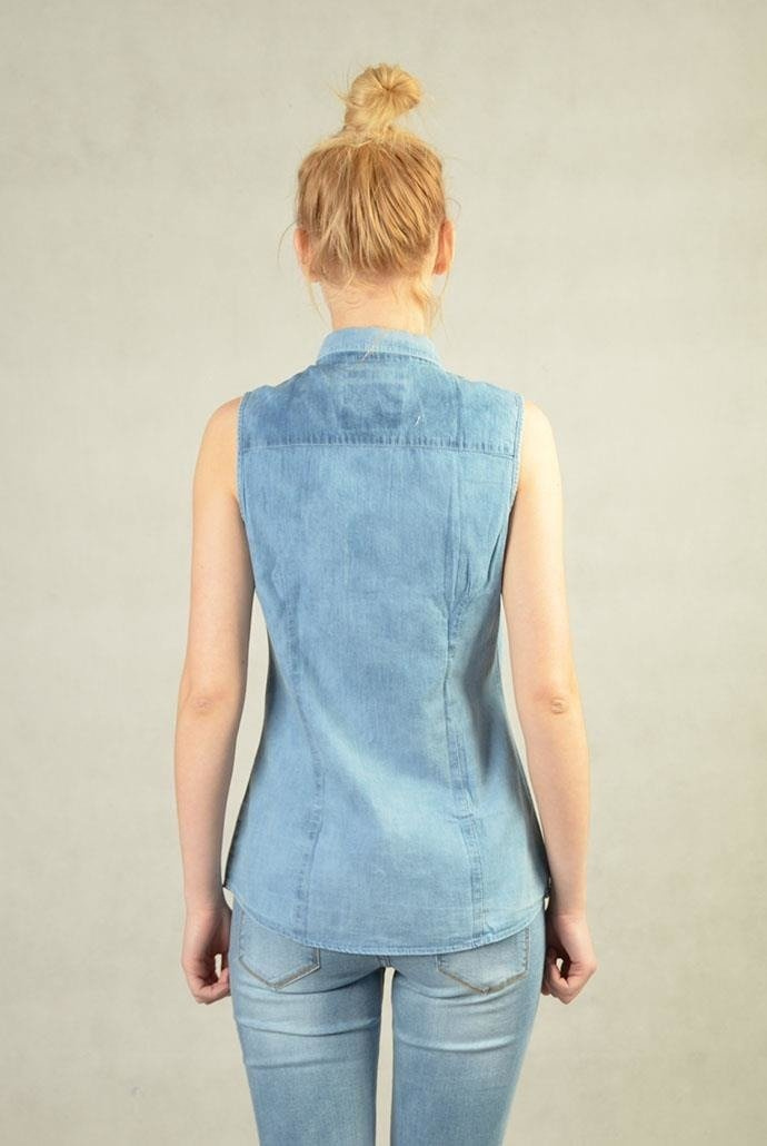 Koszula bez rękawów, zapinana na zatrzaski. Z przodu dwie kieszonki.