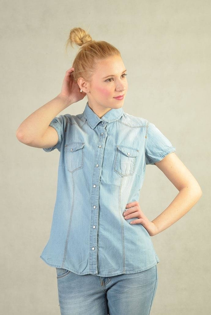 Koszula jeansowa, z krótkim rękawkiem zapinana na zatrzaski. Z przodu dwie kieszonki.