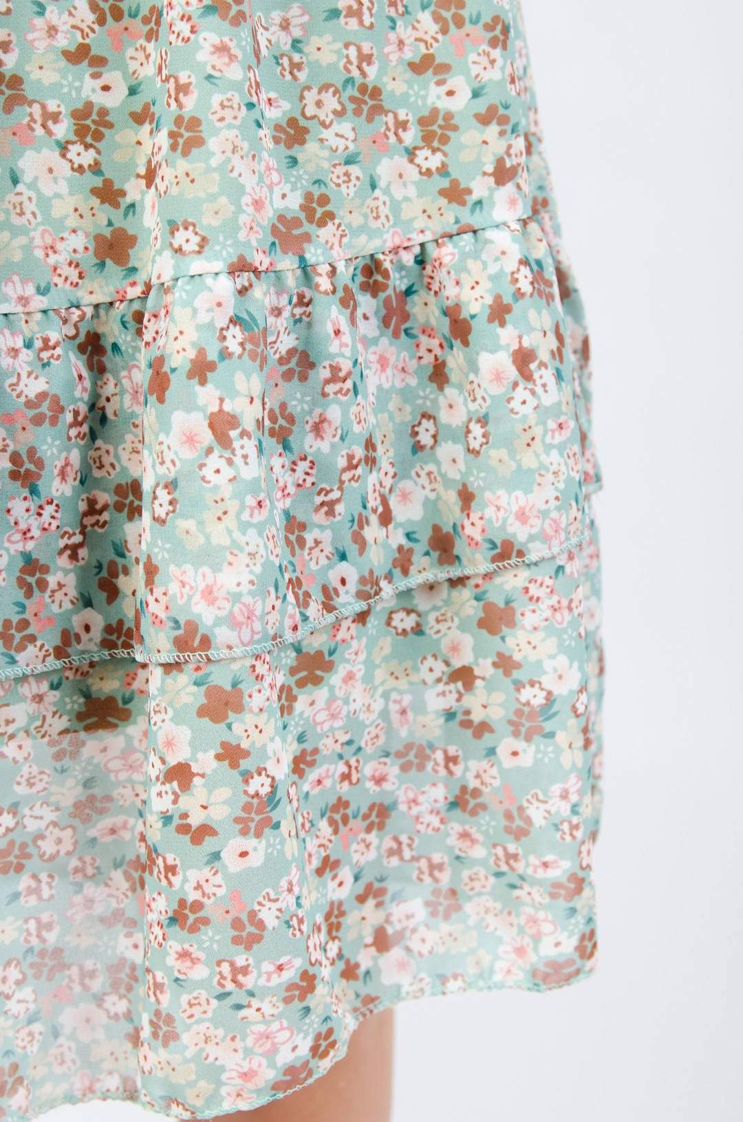 ZIELONA SUKIENKA HISZPANKA Z KWIATOWYM WZOREM