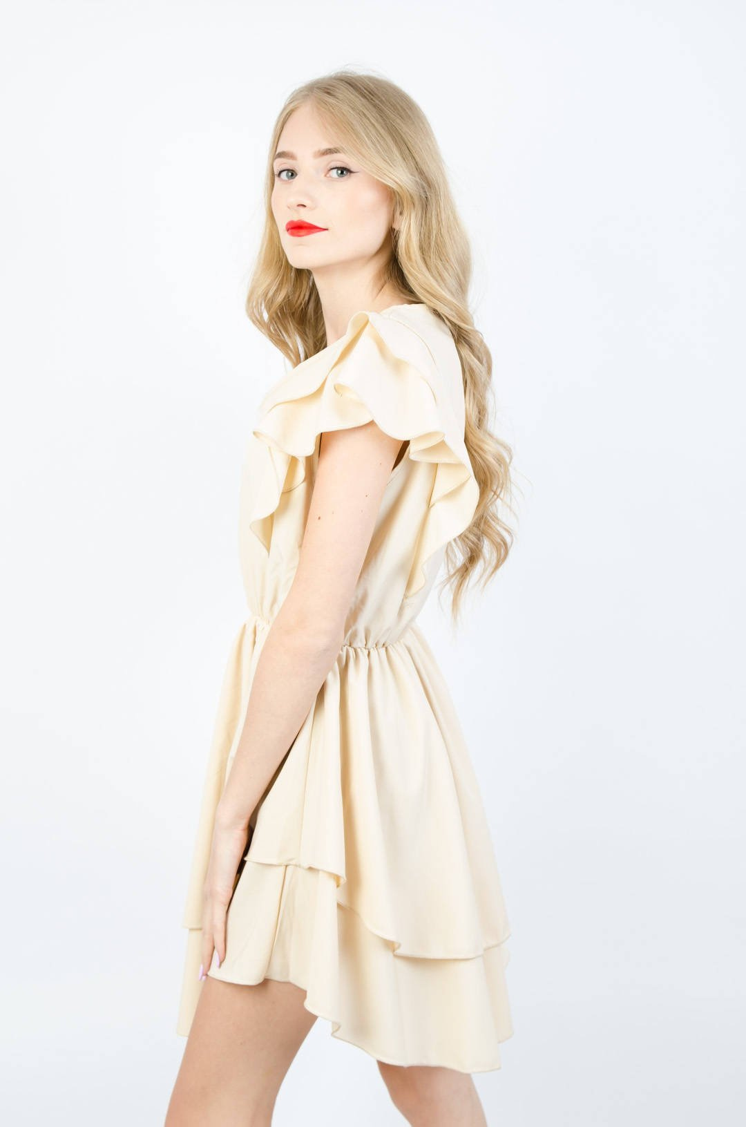 BEŻOWA SUKIENKA BUTTERFLY Z FALBANAMI