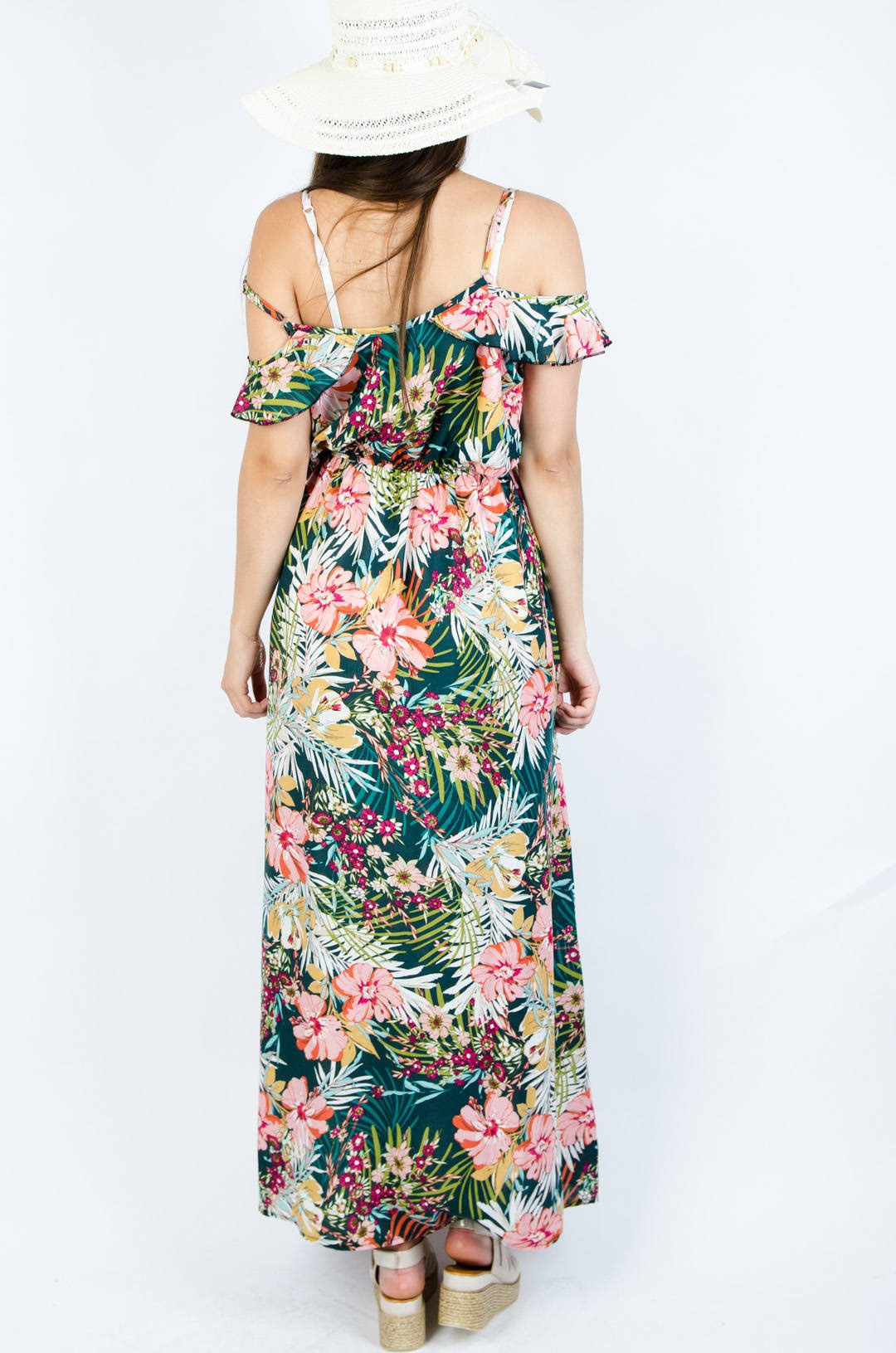 ZIELONA SUKIENKA MAXI Z MOTYWEM KWIATOWYM