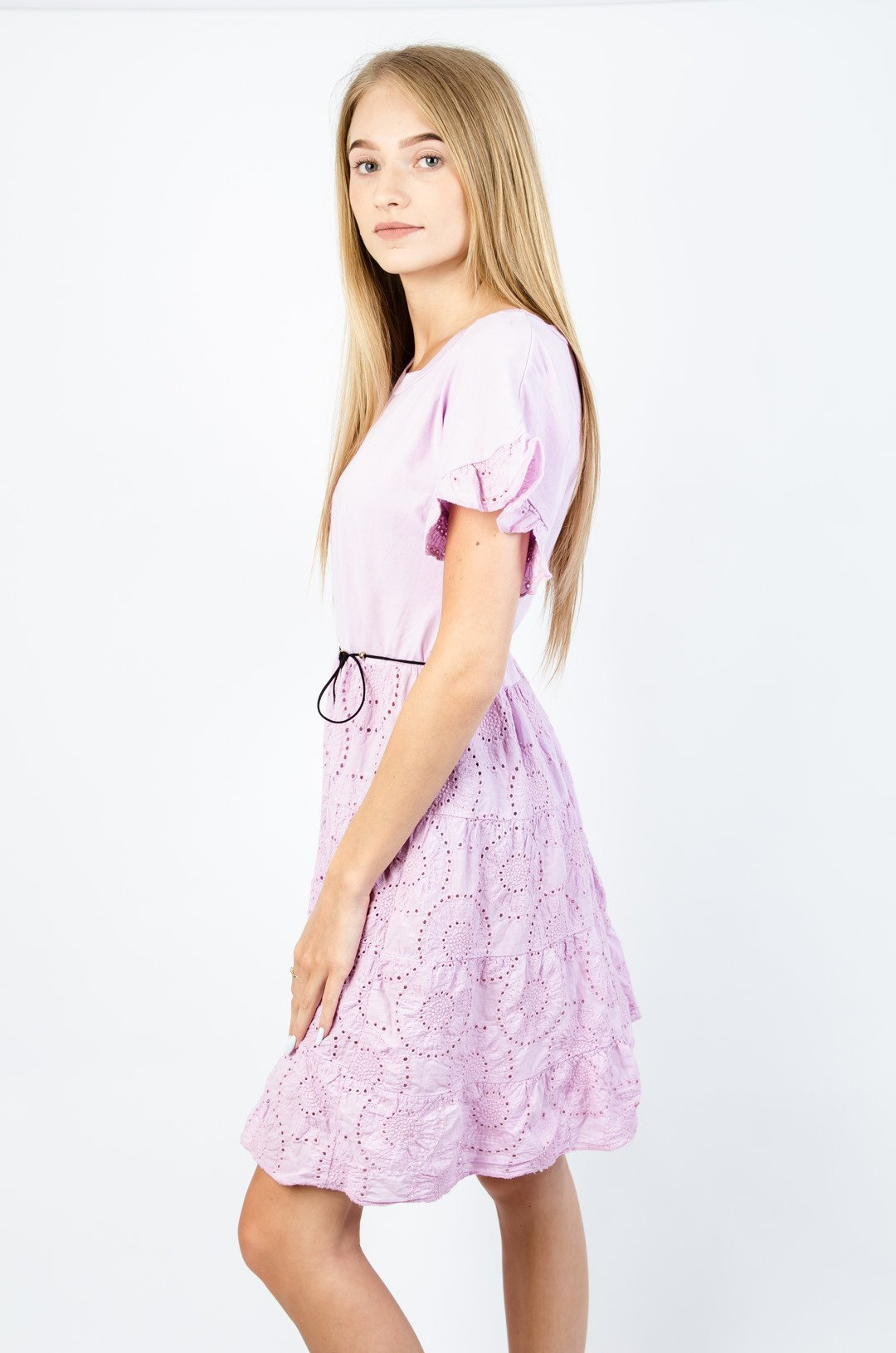 FIOLETOWA BAWEŁNIANA AŻUROWA SUKIENKA Z HAFTEM