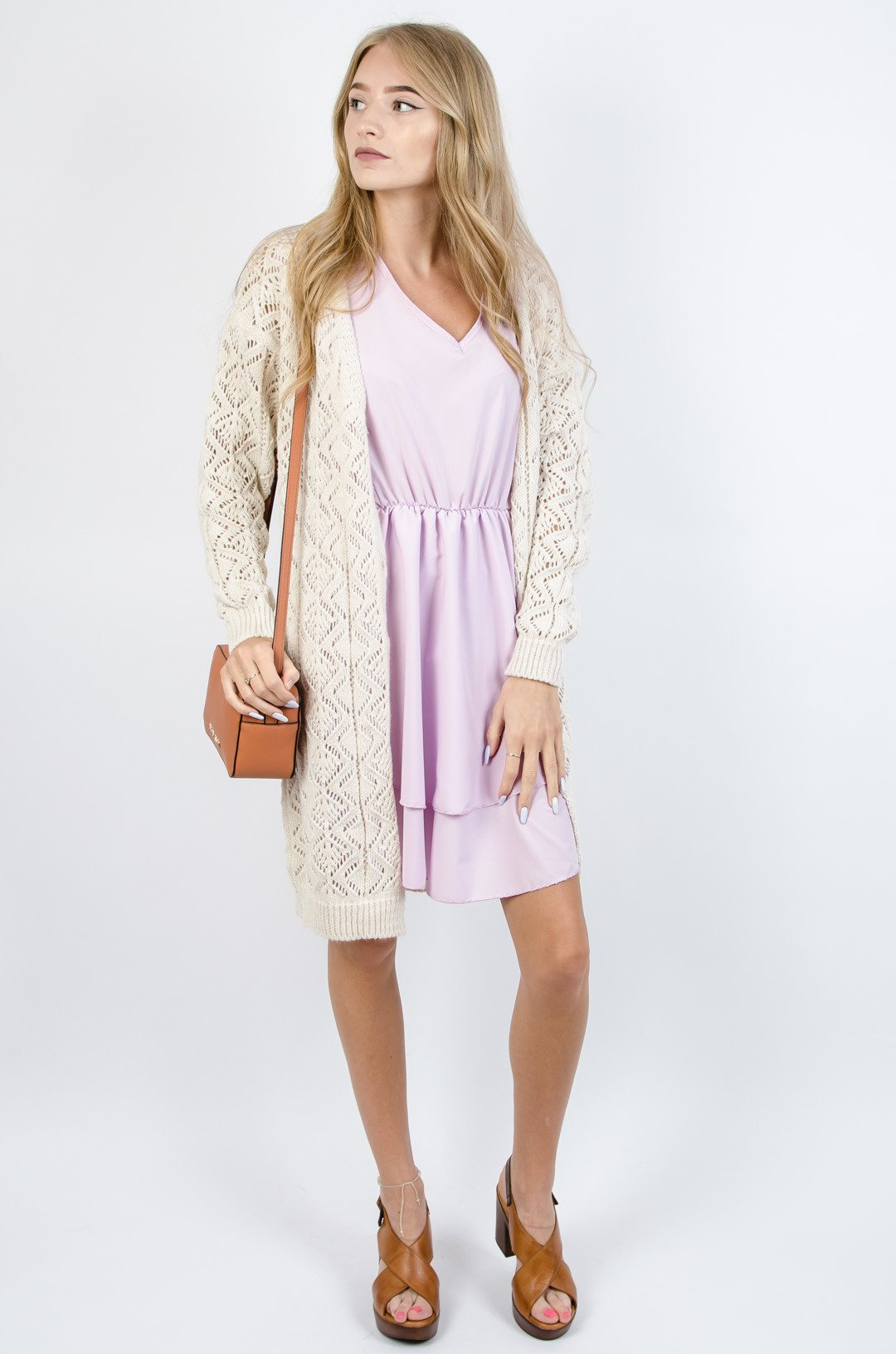 DŁUGI BEŻOWY AŻUROWY SWETER