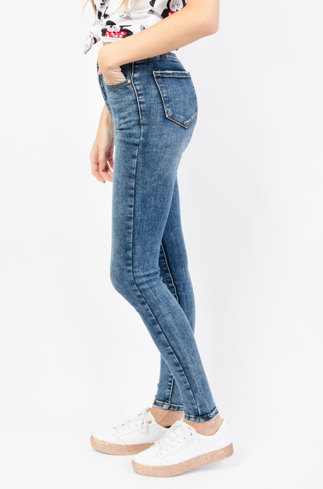 CIEMNE SPODNIE JEANSOWE Z WYSOKIM STANEM