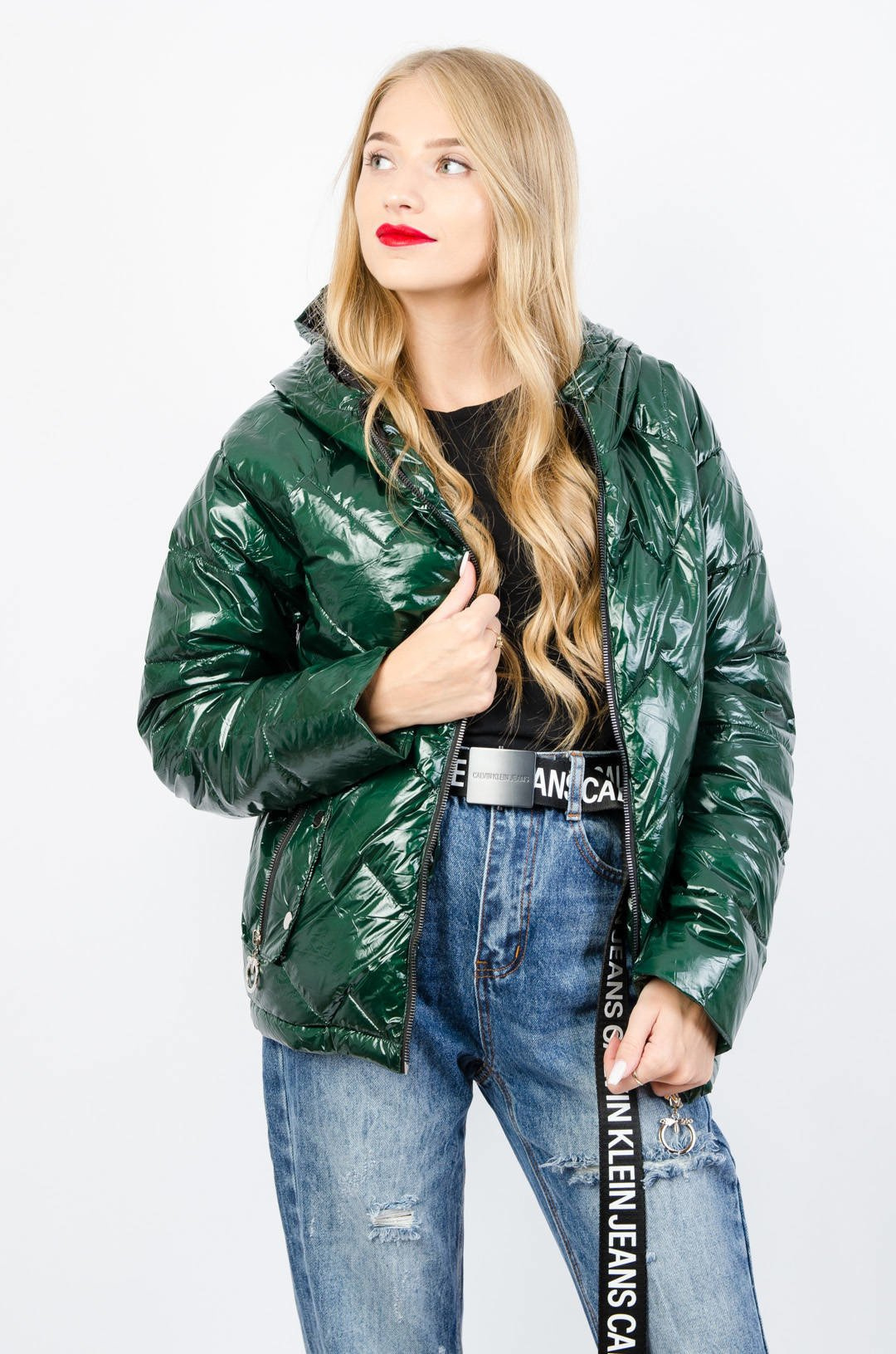 ZIELONA BŁYSZCZĄCA KURTKA Z KAPTUREM