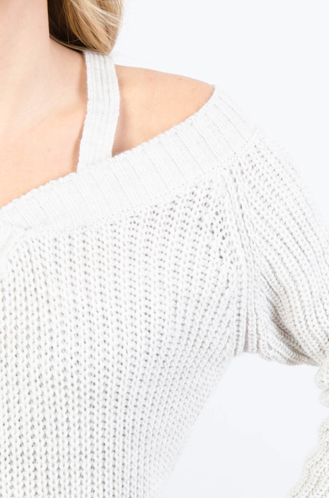 BEŻOWY SWETER NA RAMIĄCZKACH
