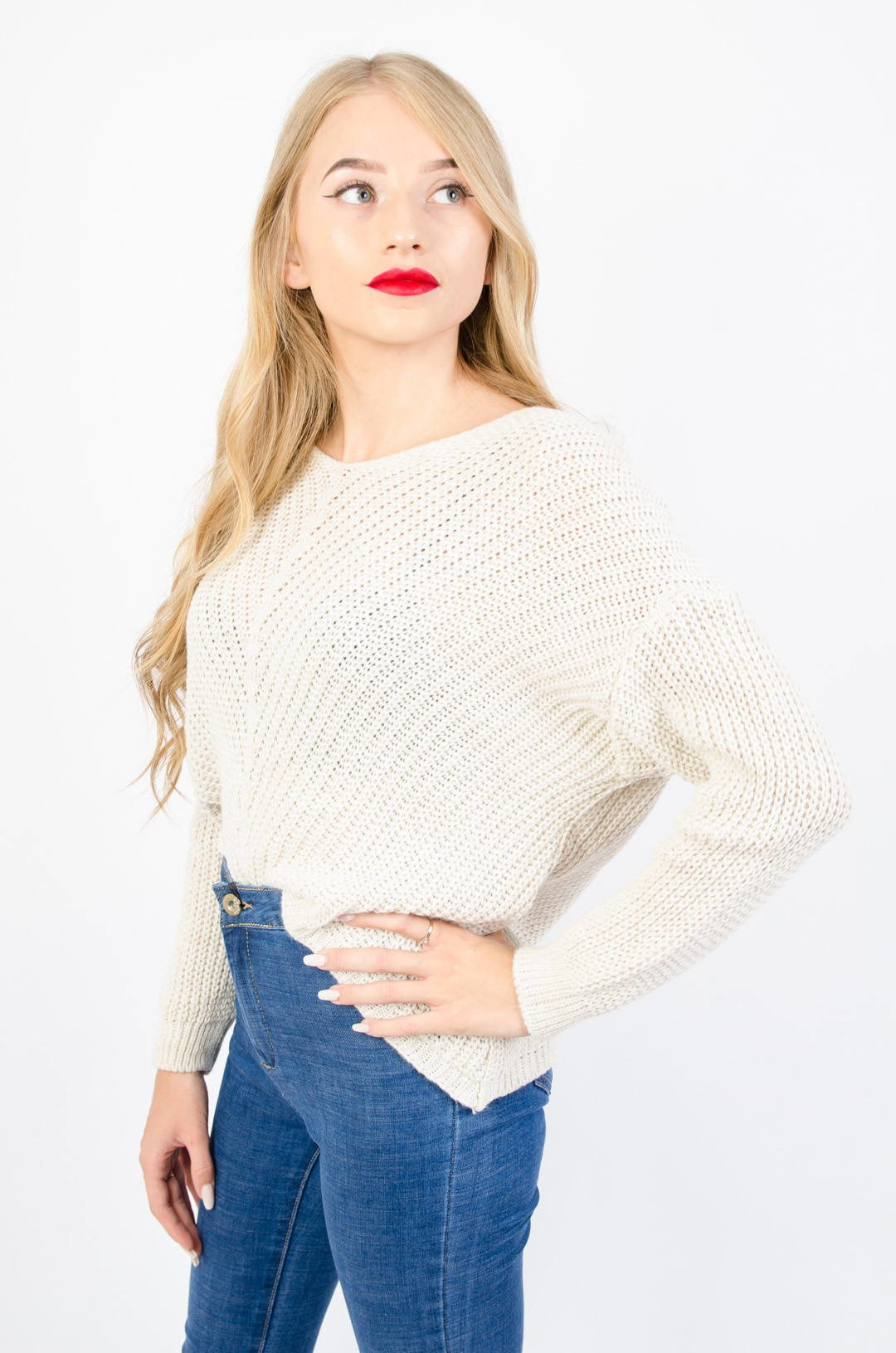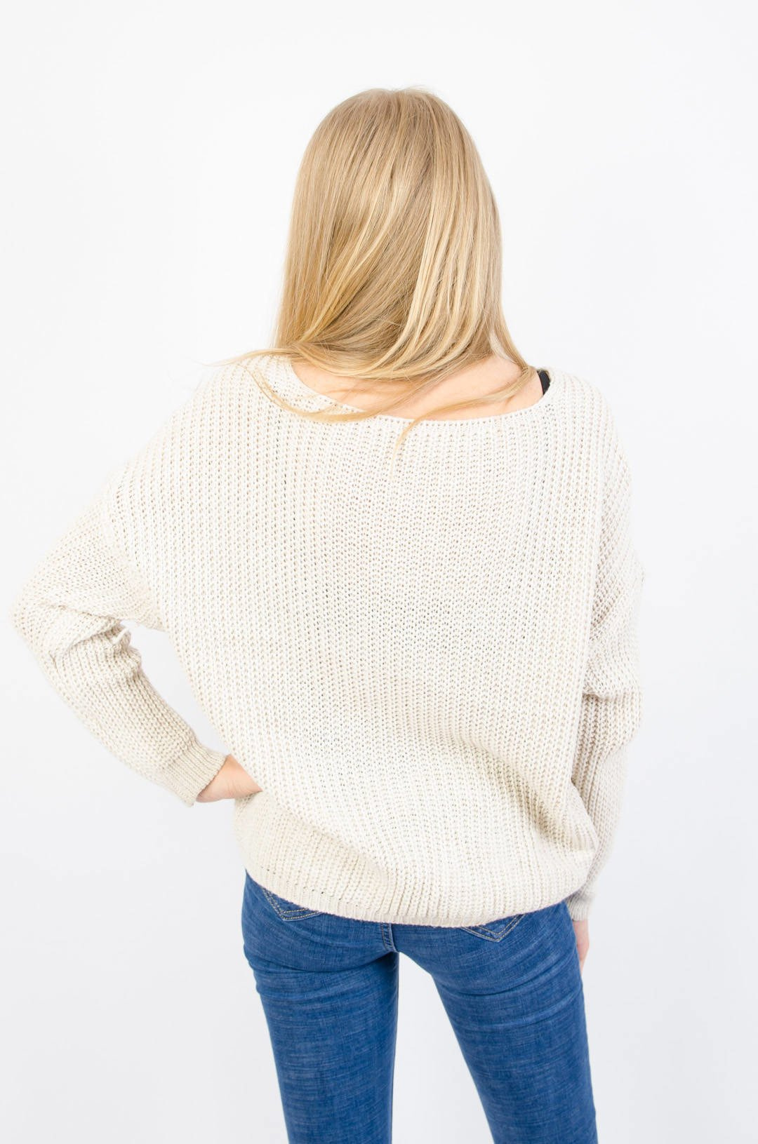 BEŻOWY ASYMETRYCZNY SWETER W SZPIC