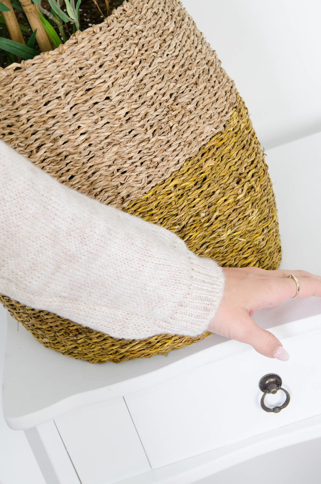 BEŻOWY LUŹNY SWETER Z DEKOLTEM W SZPIC