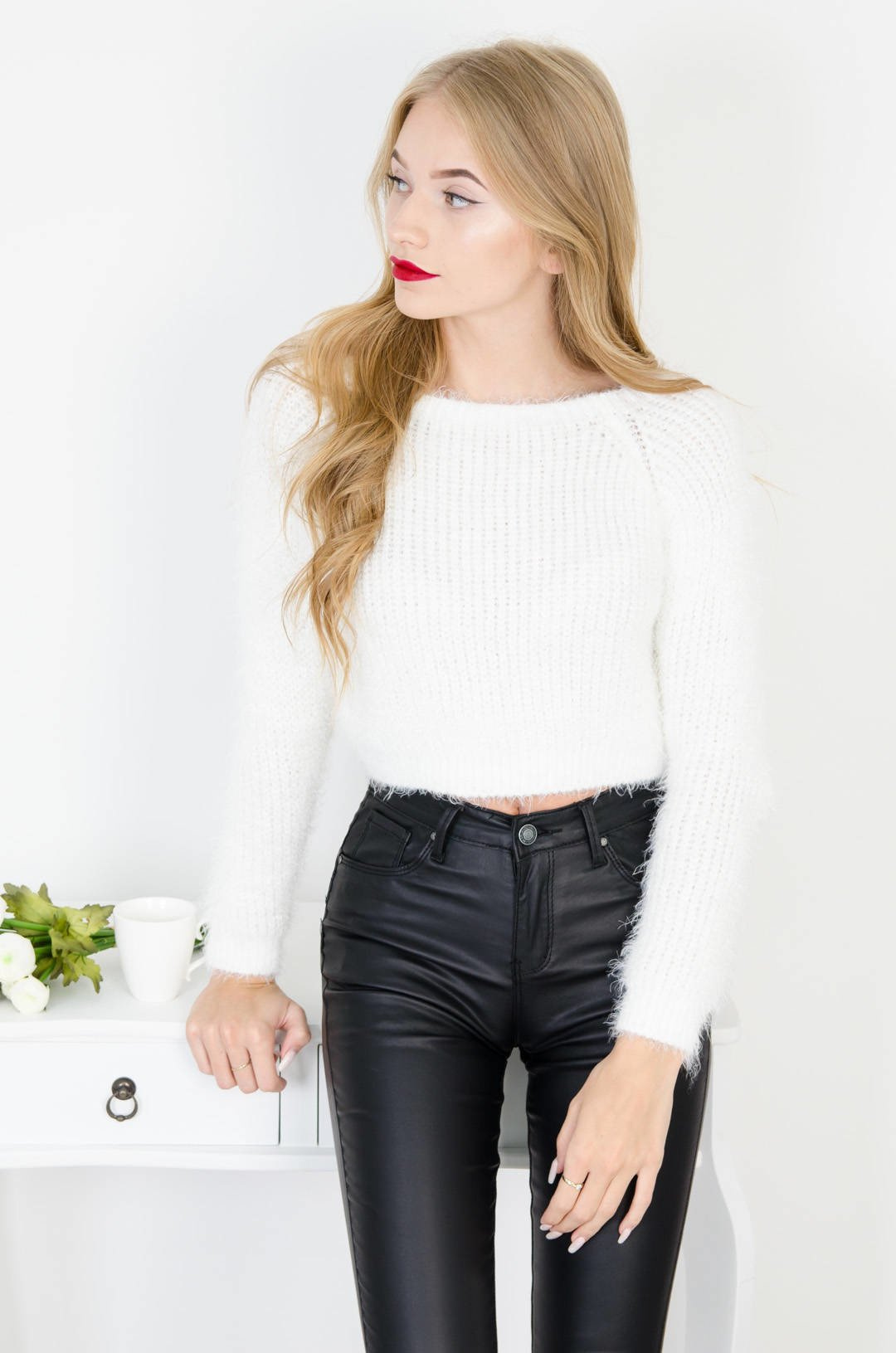 BIAŁY KRÓTKI WŁOCHATY SWETER