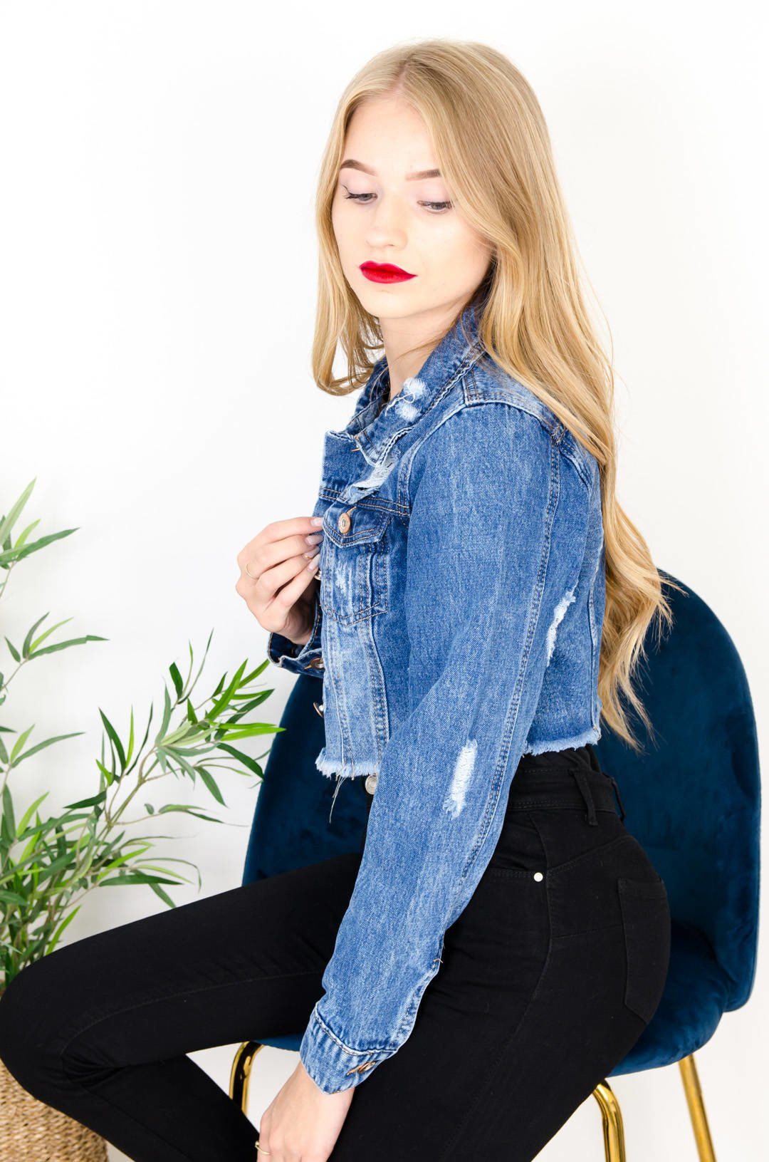 KRÓTKA KURTKA JEANSOWA Z APLIKACJĄ NA PLECACH