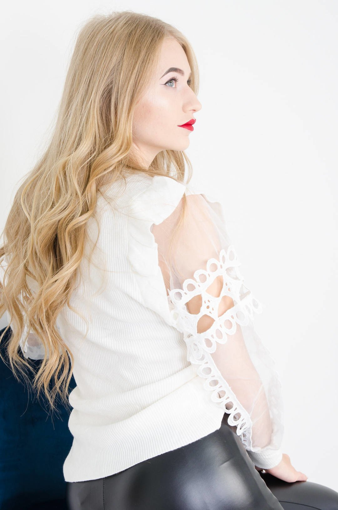 BIAŁA PRĄŻKOWANA BLUZKA Z OZDOBNYMI RĘKAWAMI