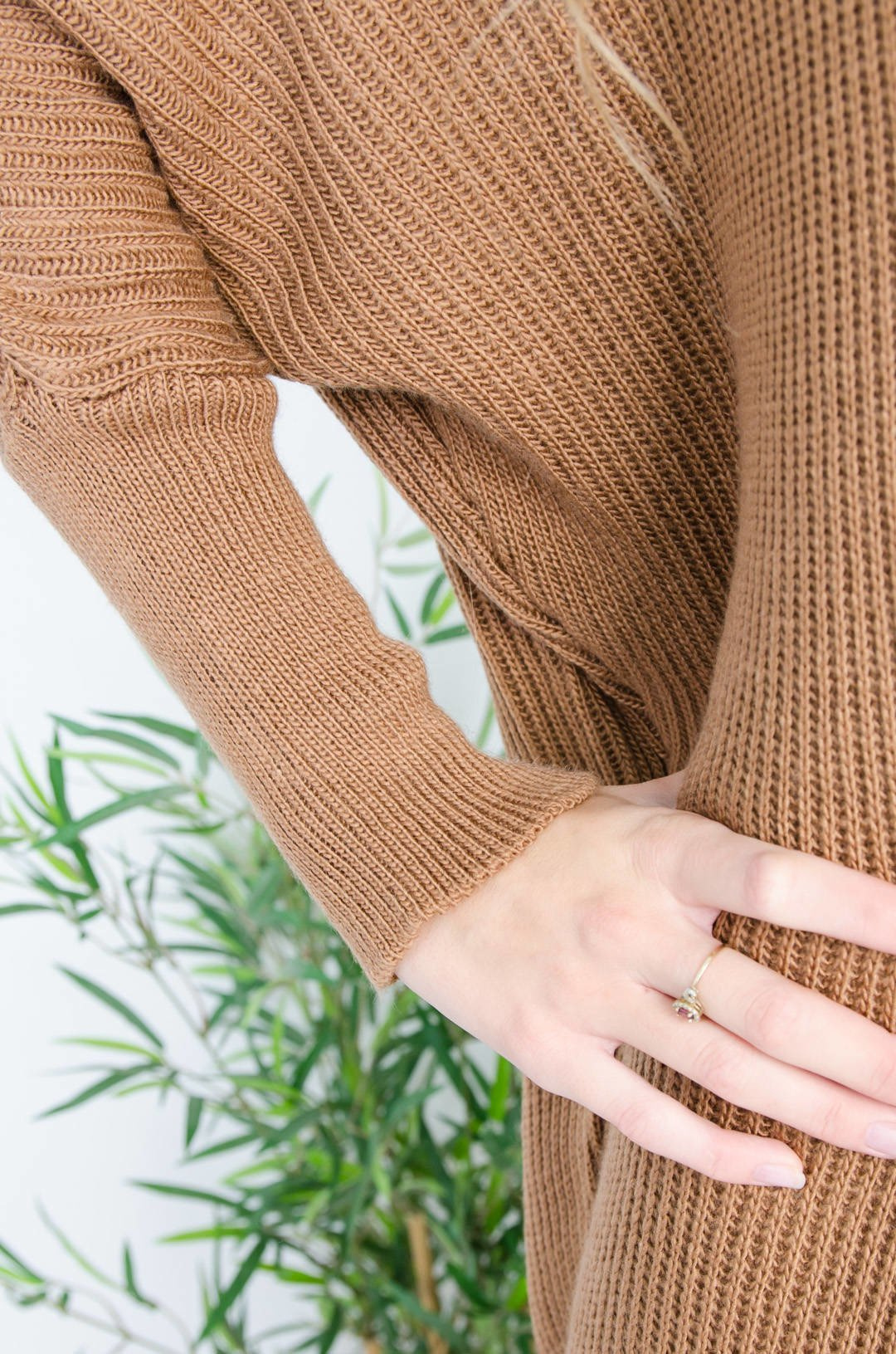 BRĄZOWA SUKIENKA SWETERKOWA Z KAPTUREM