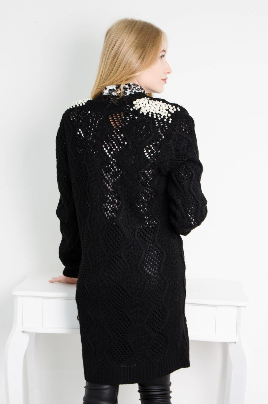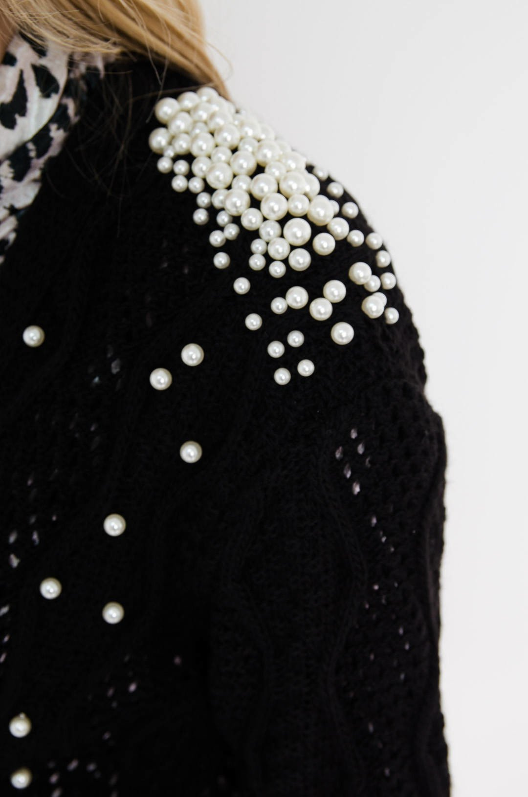 CZARNY DŁUGI SWETER Z PEREŁKAMI