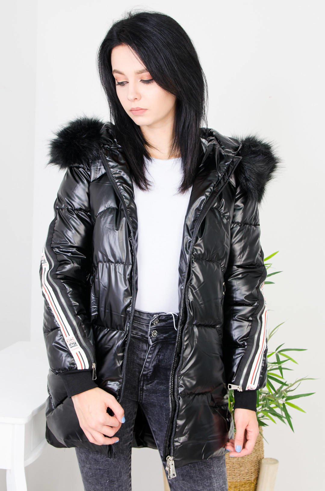 CZARNA POŁYSKUJĄCA KURTKA Z LAMPASAMI