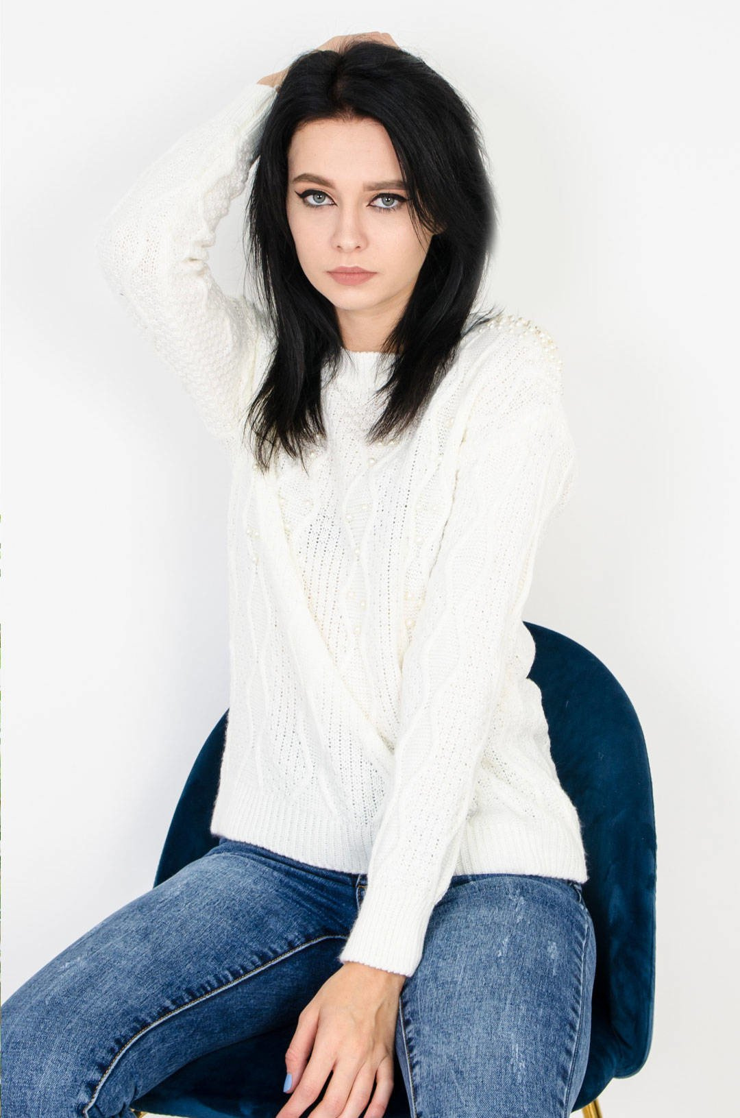 KREMOWY SWETER Z PEREŁKAMI