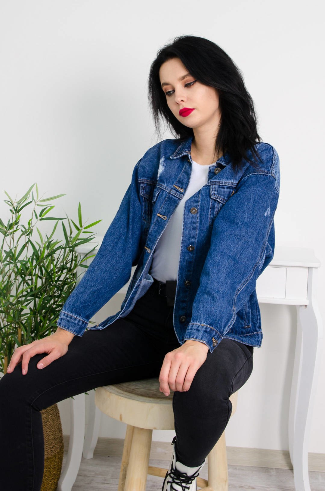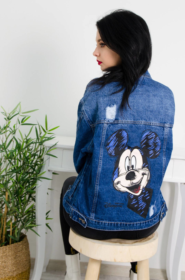 CIEMNA JEANSOWA KURTKA Z APLIKACJĄ NA PLECACH