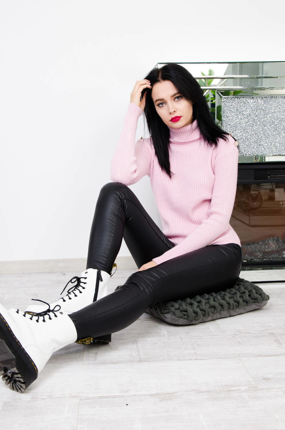 RÓŻOWY PRĄŻKOWANY GOLF ZE ZŁOTYMI GUZIKAMI