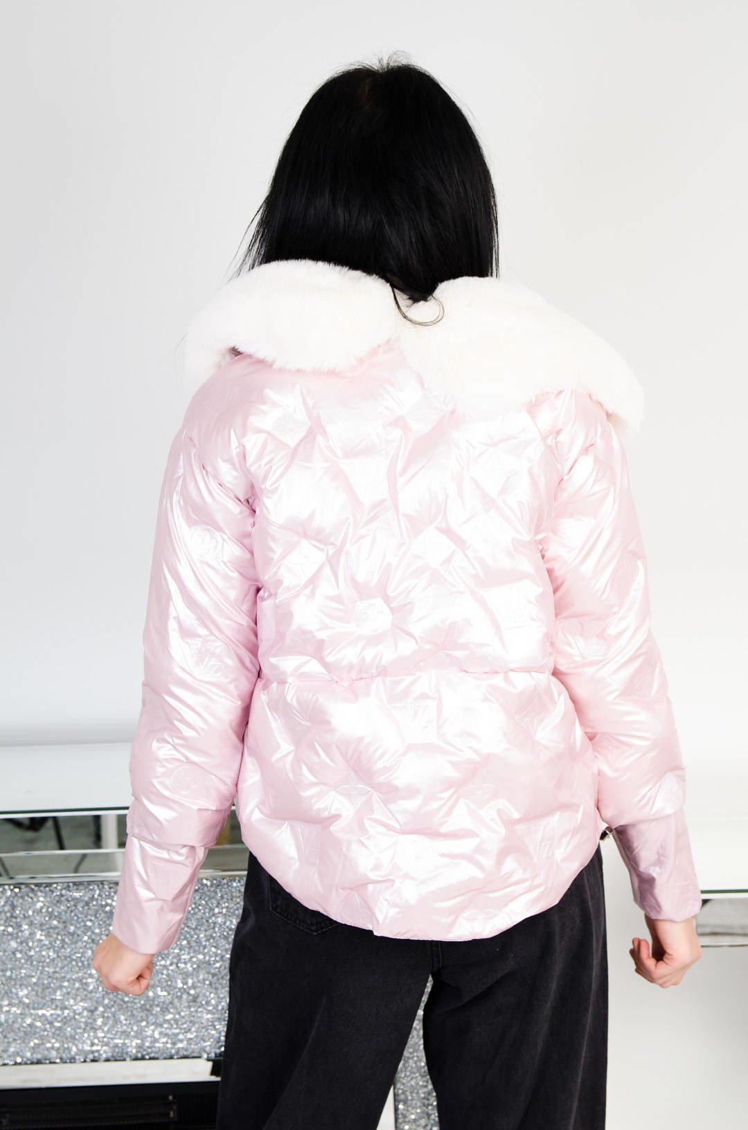 RÓŻOWA KURTKA Z BEŻOWYM KOŁNIERZEM-ŚCIĄGACZ W RĘKAWIE