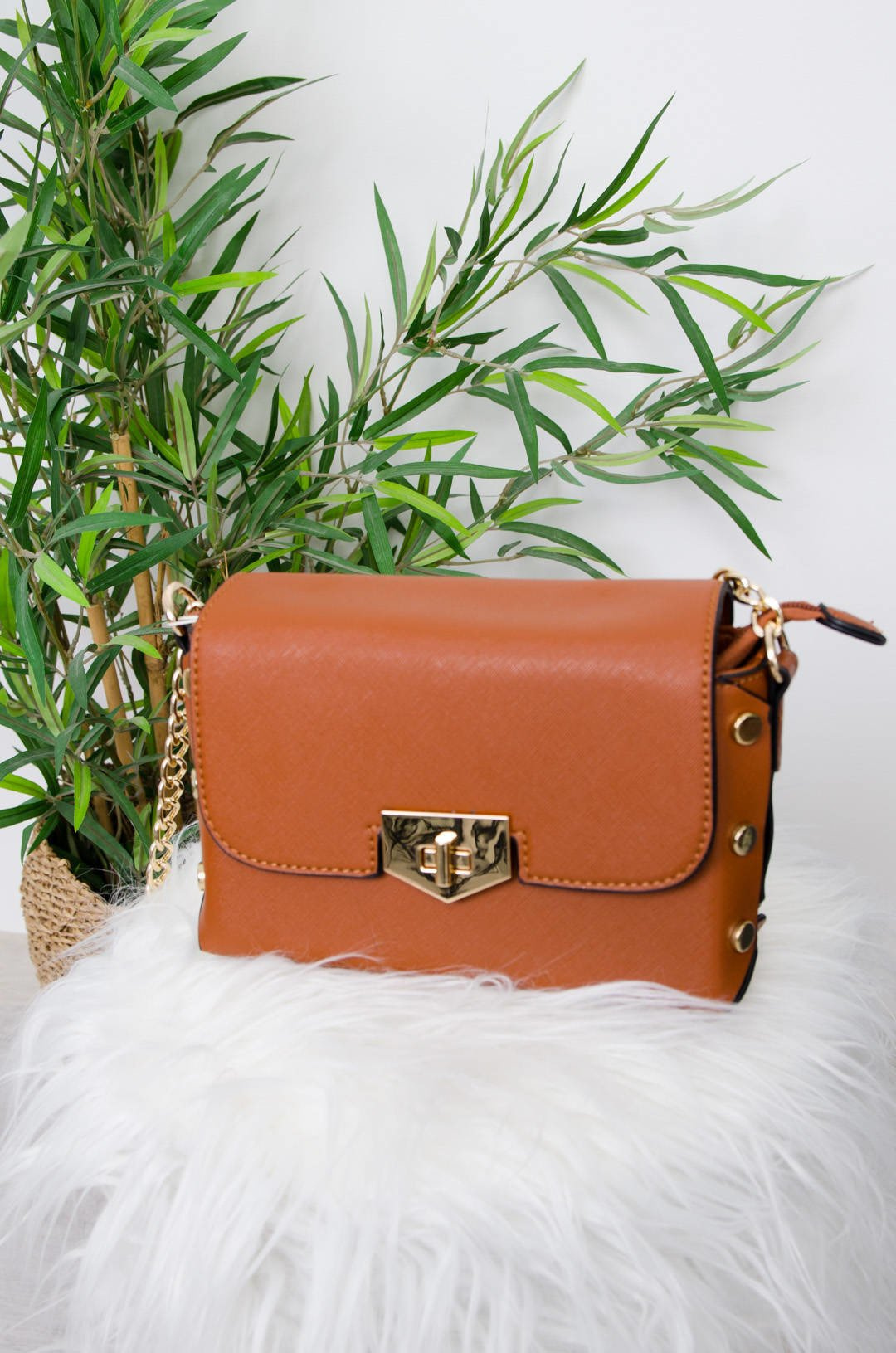 BRĄZOWA TOREBKA LISTONOSZKA ZE ZŁOTYMI GUZIKAMI