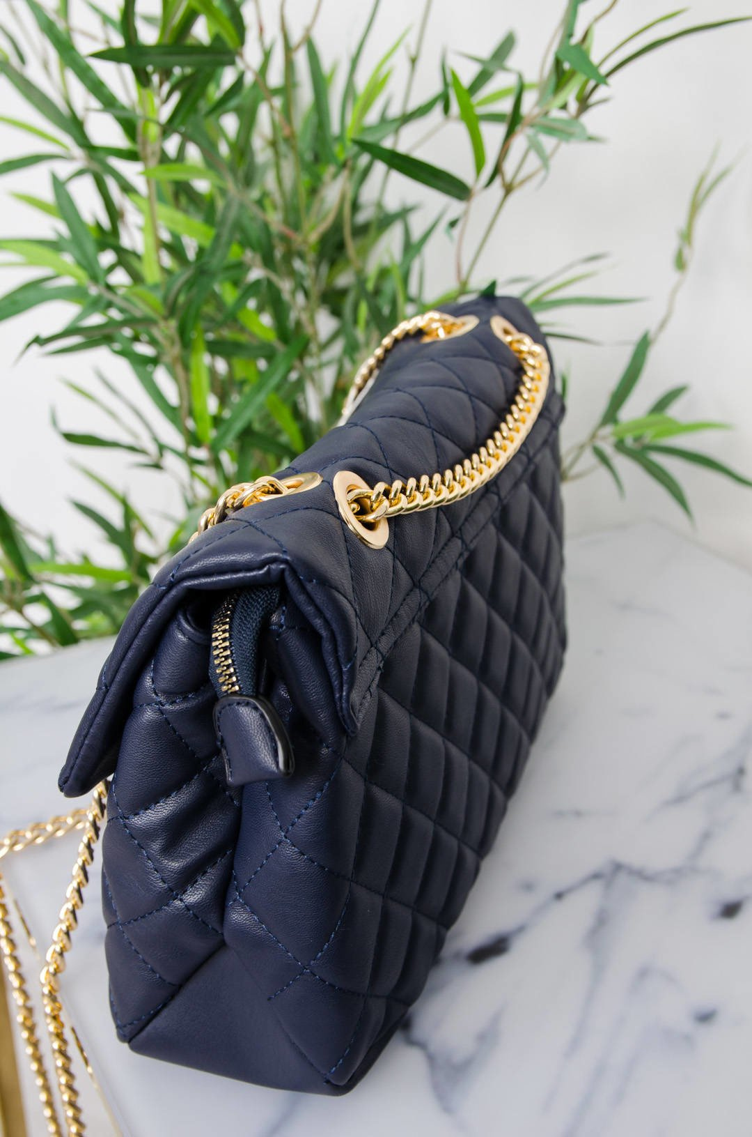 GRANATOWA PIKOWANA CHANELKA NA ZŁOTYM ŁAŃCUSZKU
