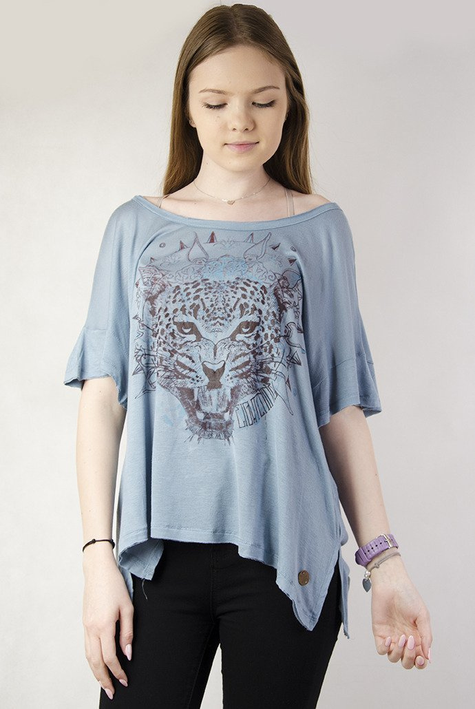 Luźna niebieska bluzka z tygrysem