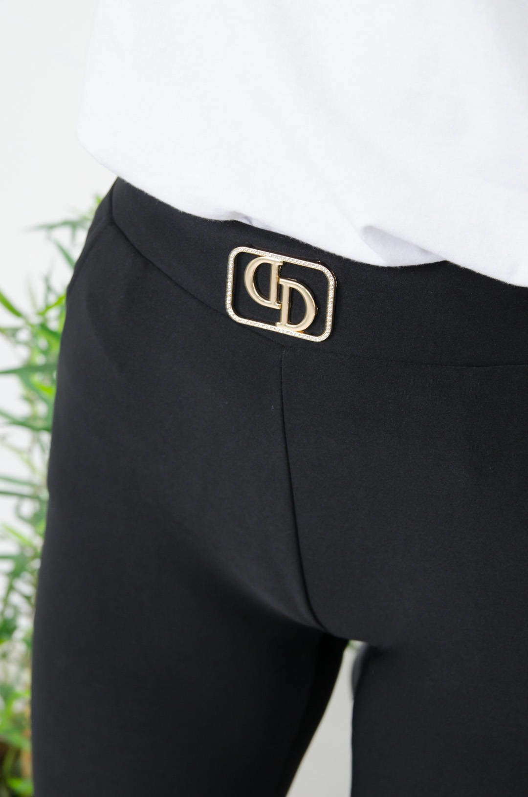 CZARNE LEGGINSY ZE ZŁOTYM ZNACZKIEM W PASIE